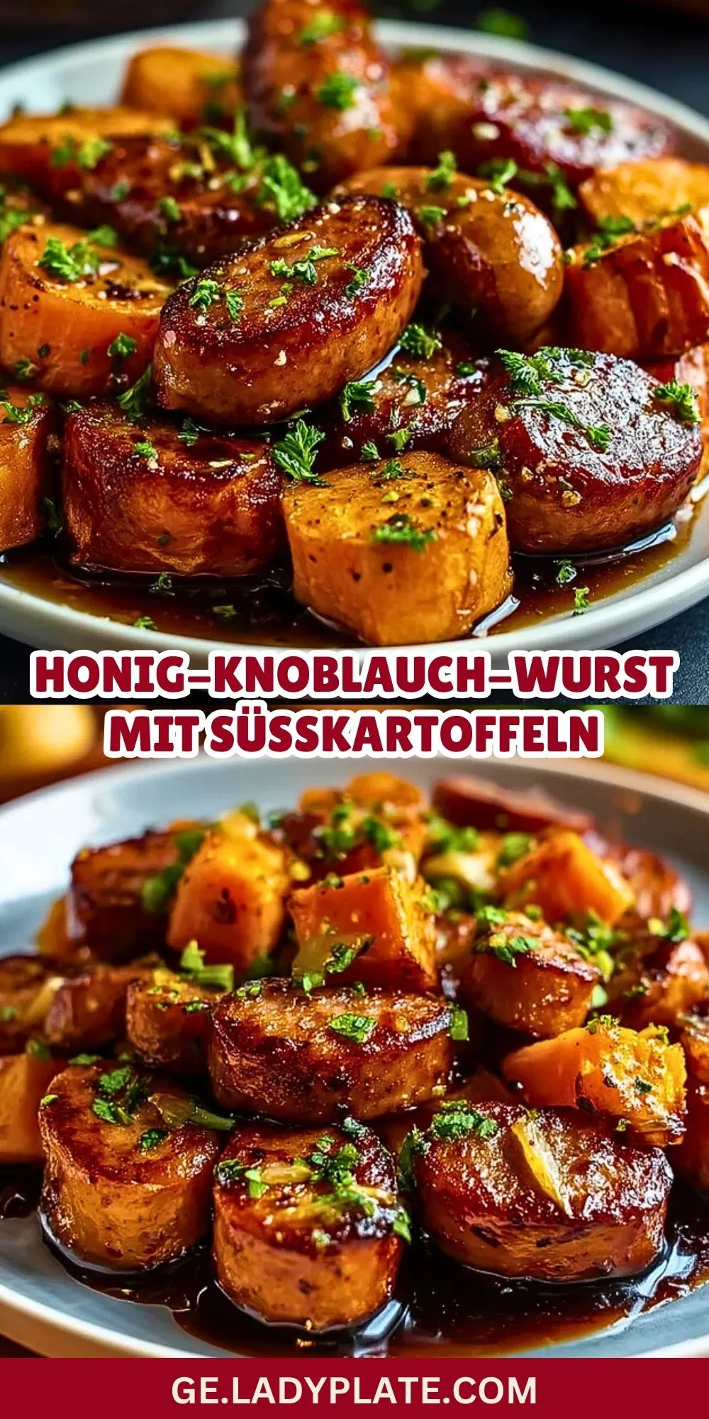 Herzhafte Bratwurststücke, karamellisiert mit Honig und Knoblauch, treffen auf zarte Süßkartoffeln aus dem Ofen. Das perfekte Gericht, wenn es schnell gehen und trotzdem richtig lecker sein soll – unkompliziert, aromatisch und absolut gelingsicher!