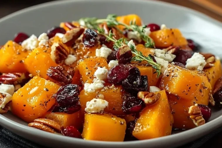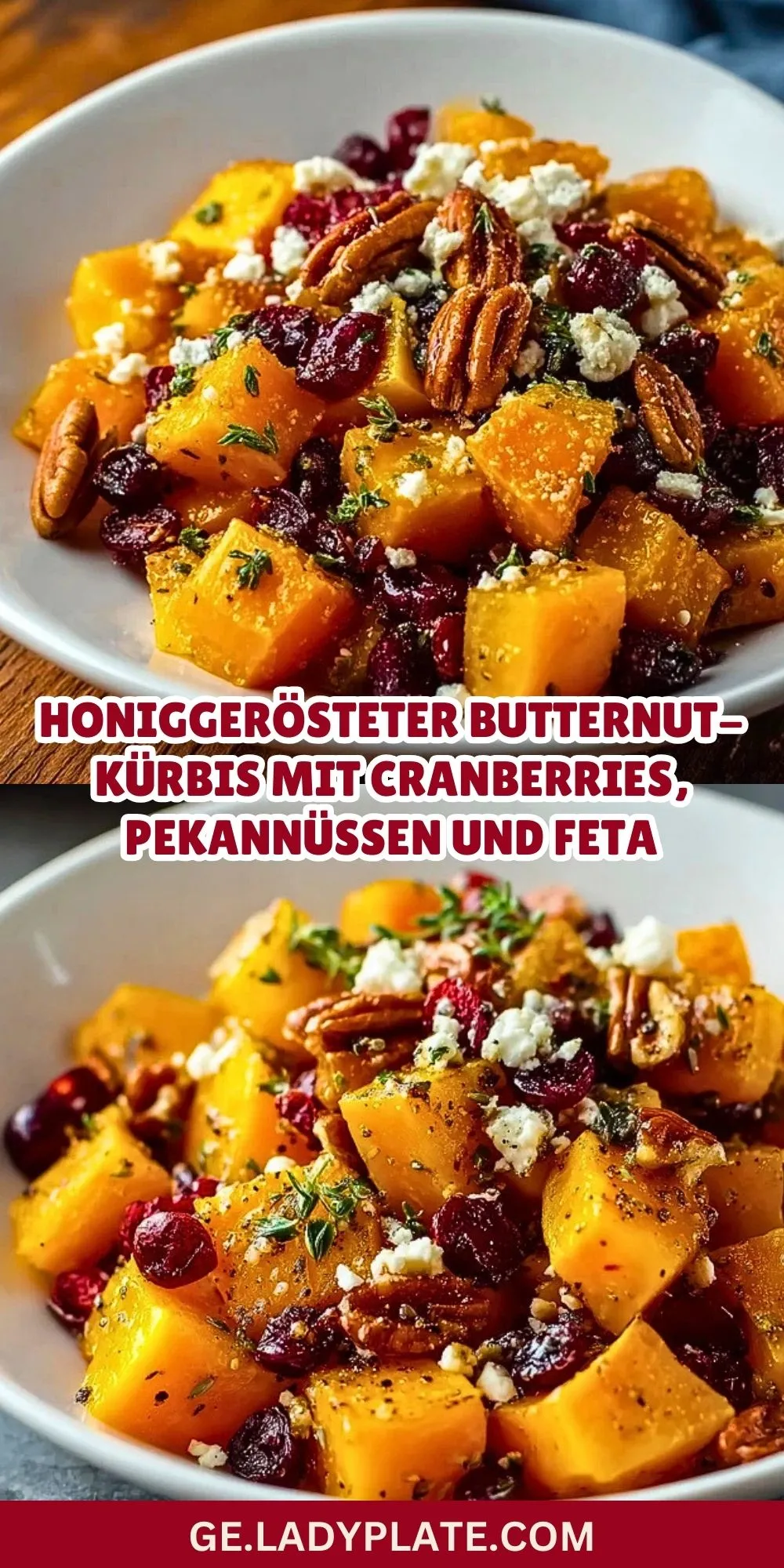 Honiggerösteter Butternut-Kürbis mit Cranberries, Pekannüssen und Feta