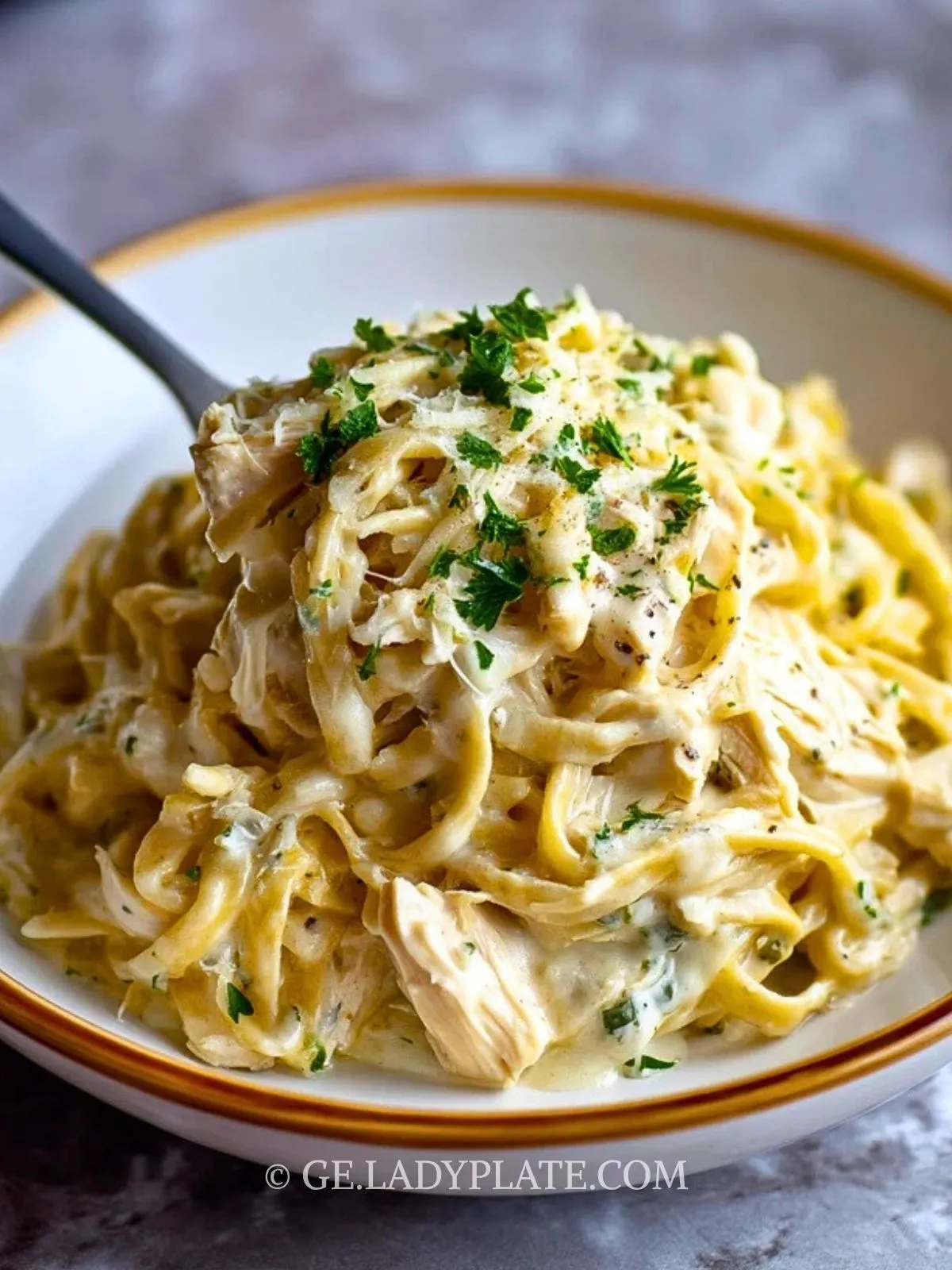 Ein cremiges Wohlfühlgericht mit zartem Hähnchen, feiner Knoblauchnote und viel Parmesan – perfekt für entspannte Tage, an denen der Slow Cooker die Hauptarbeit übernimmt. Die Sauce wird herrlich samtig, verbindet sich wunderbar mit der Pasta und macht dieses Rezept zu einer einfachen, aber besonders beliebten Familienmahlzeit.