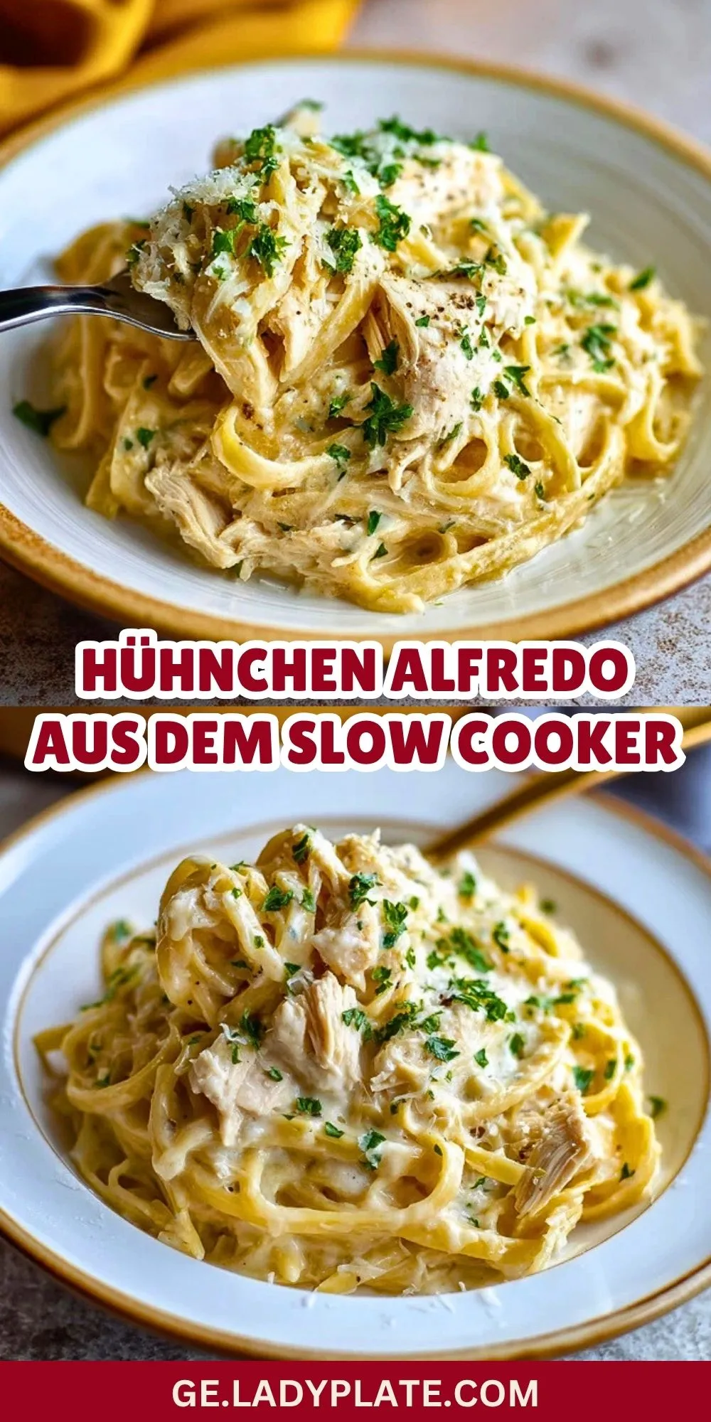 Keywords: Hühnchen Alfredo aus dem Slow Cooker, cremige Pasta, Hähnchen Rezept, Slow Cooker Rezept, Alfredo Pasta