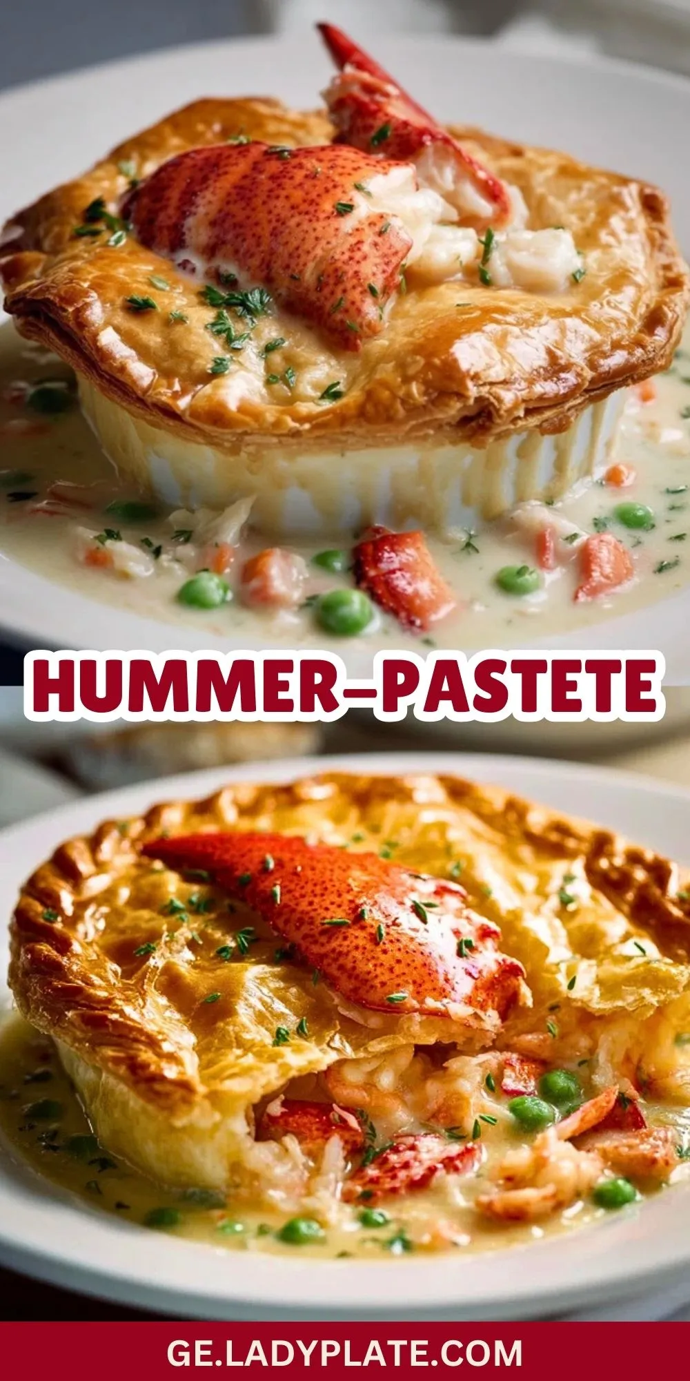Diese Hummer-Pastete ist ein wahres Festessen: Zartes Hummerfleisch in cremiger Sauce mit Gemüse, überbacken unter goldbraunem Blätterteig – das perfekte Gericht für besondere Anlässe oder wenn du deinen Gästen ein echtes Highlight bieten möchtest.