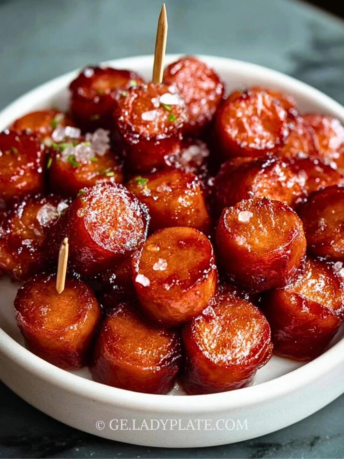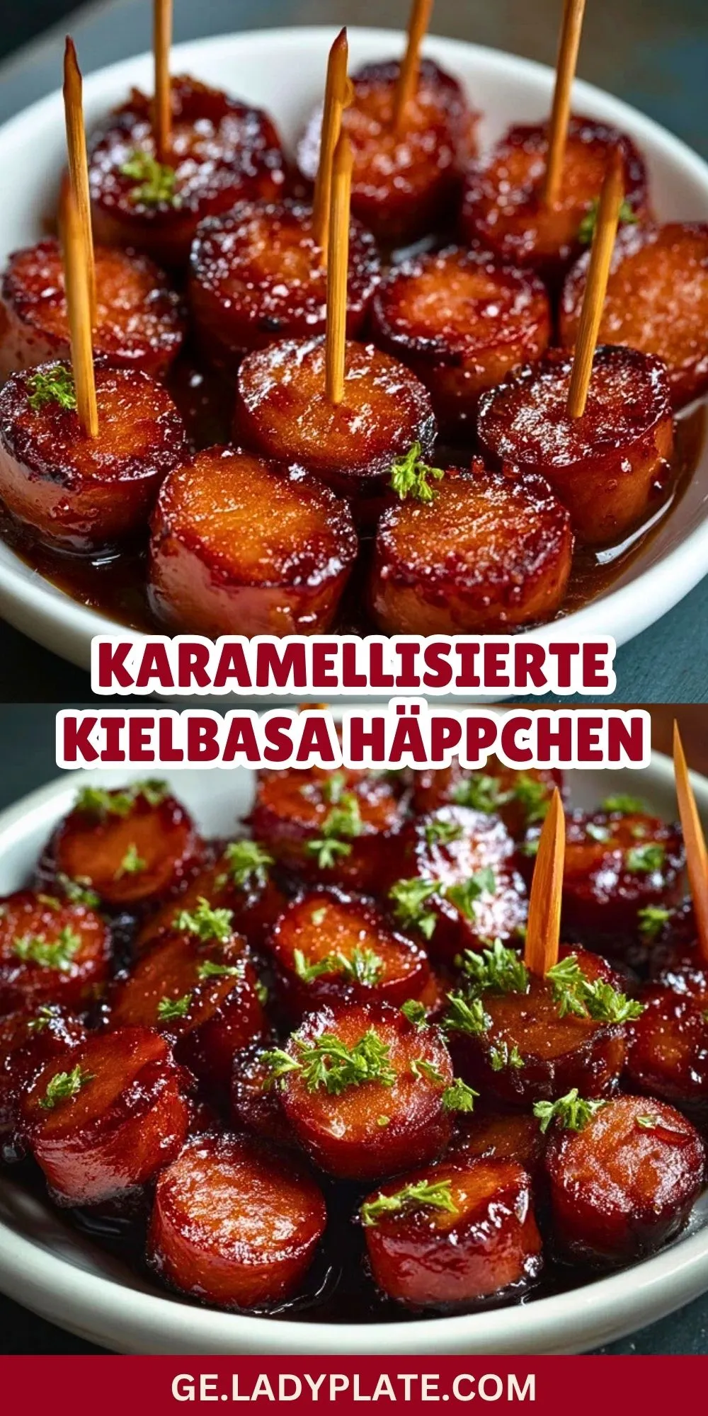 Keywords: Kielbasa, Fingerfood, Partyrezept, Wursthäppchen, karamellisiert