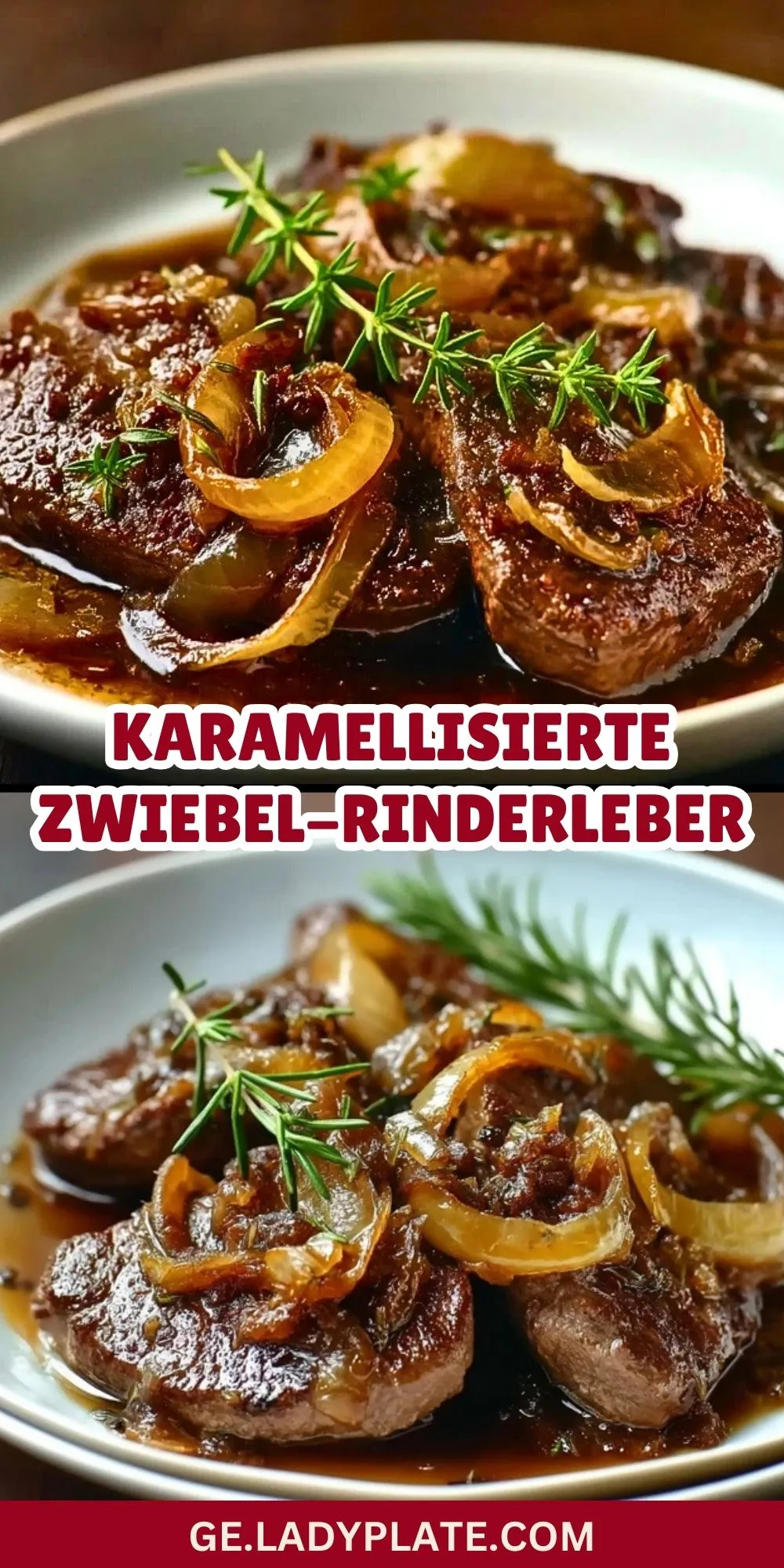 Die Karamellisierte Zwiebel-Rinderleber auf vorgewärmten Tellern anrichten, mit frischen Kräutern garnieren und direkt servieren.