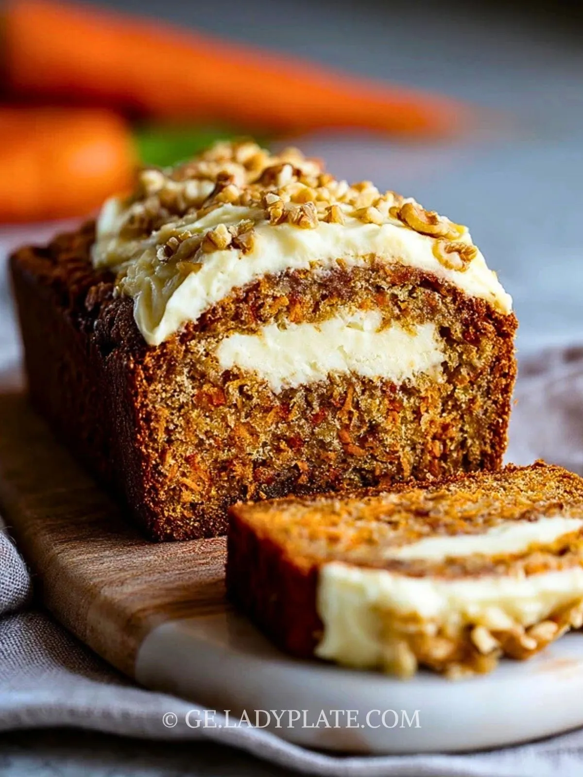 Ein saftiger Karottenkuchen mit feiner Würze, cremiger Frischkäsefüllung in der Mitte und einem zarten Frischkäse-Frosting obendrauf. Dieser Kuchen ist wunderbar weich, angenehm aromatisch und ideal für Ostern, den Sonntagskaffee oder jeden Anlass, bei dem ein besonderer Kastenkuchen gefragt ist.
