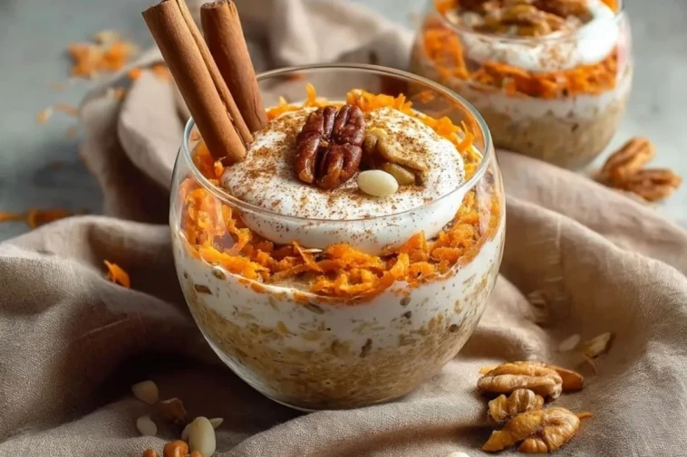 Karottenkuchen Overnight Oats sind ein cremiges, würziges Frühstück mit dem gemütlichen Geschmack eines klassischen Karottenkuchens. Fein geriebene Karotten, Haferflocken, Zimt, Ahornsirup und ein cremiges Topping machen dieses Rezept ideal für die Vorbereitung am Abend und einen entspannten Start in den nächsten Tag.