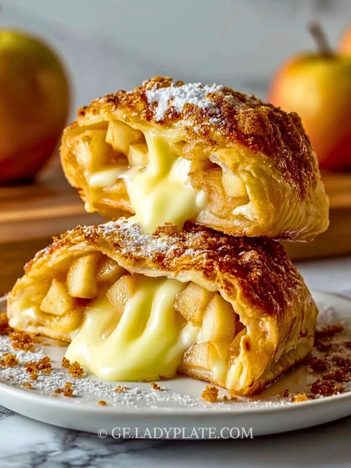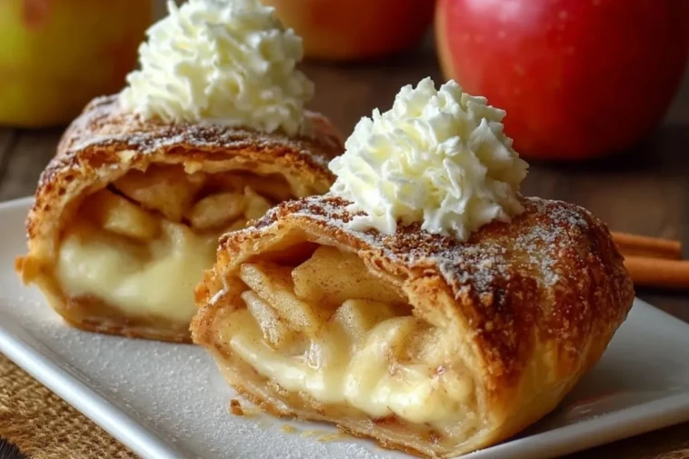 Cremige Käsekuchenfüllung, saftige Zimtäpfel und knuspriger Blätterteig – diese Käsekuchen gefüllten Apfeltaschen sind ein einfaches, aber beeindruckendes Dessert, das sich perfekt für gemütliche Nachmittage oder besondere Anlässe eignet.
