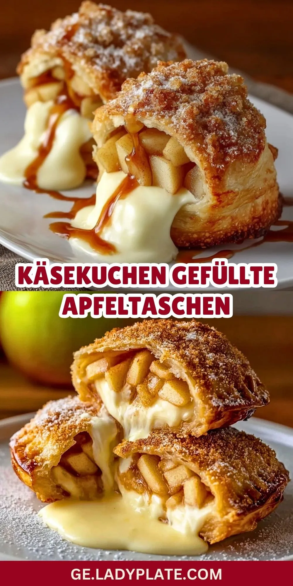 So bereitest du Käsekuchen Gefüllte Apfeltaschen zu