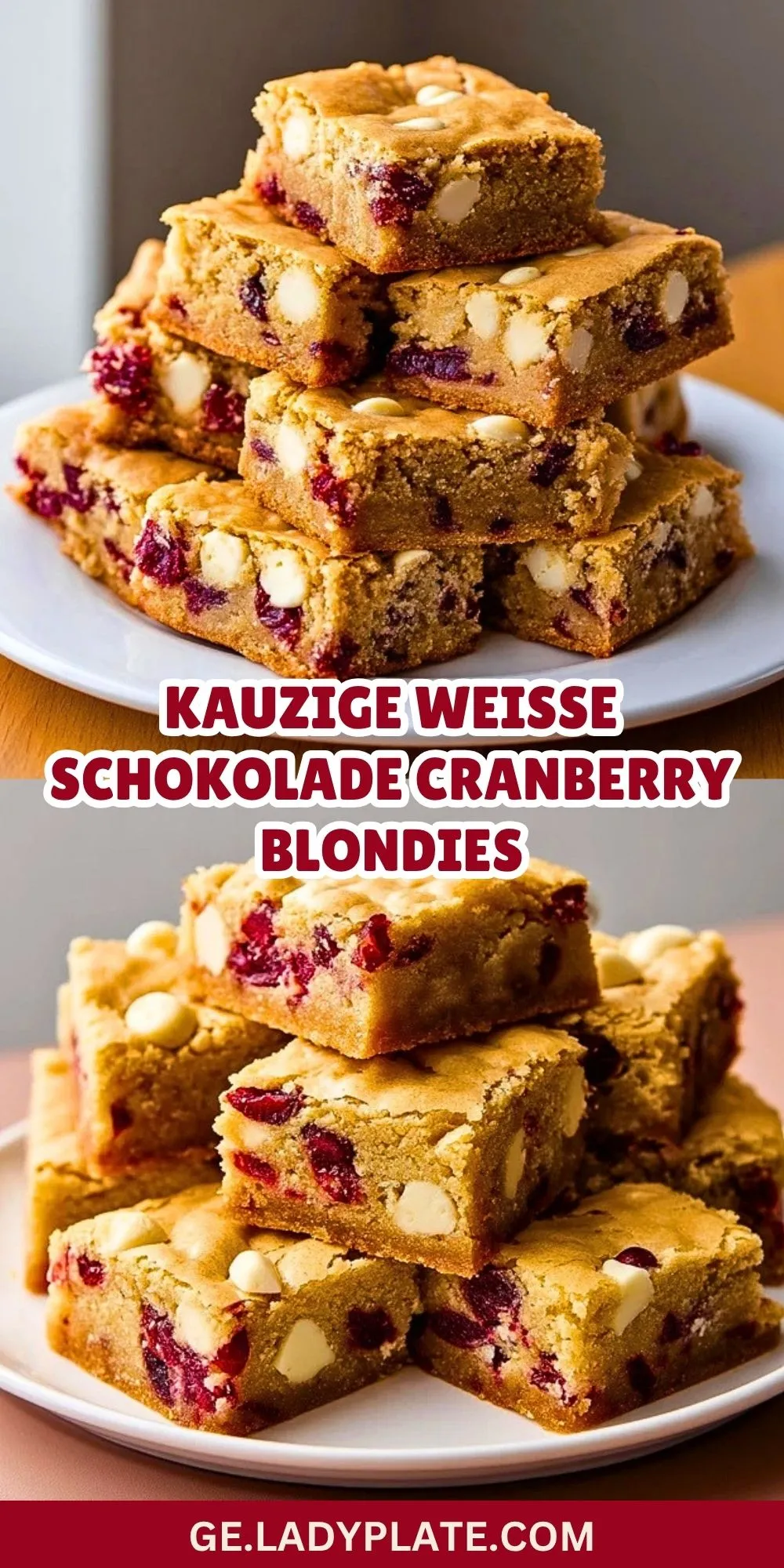 Besonders schön ist an diesem Rezept, dass es unkompliziert gelingt und trotzdem nach etwas Besonderem aussieht. Die goldene Oberfläche, die rubinroten Fruchtstücke und die hellen Schokoladentropfen machen diese Blondies zu einem Hingucker auf jedem Kuchenteller – ideal für Advent, Nachmittagskaffee, Mitbringsel oder einfach für einen gemütlichen Backtag zu Hause.