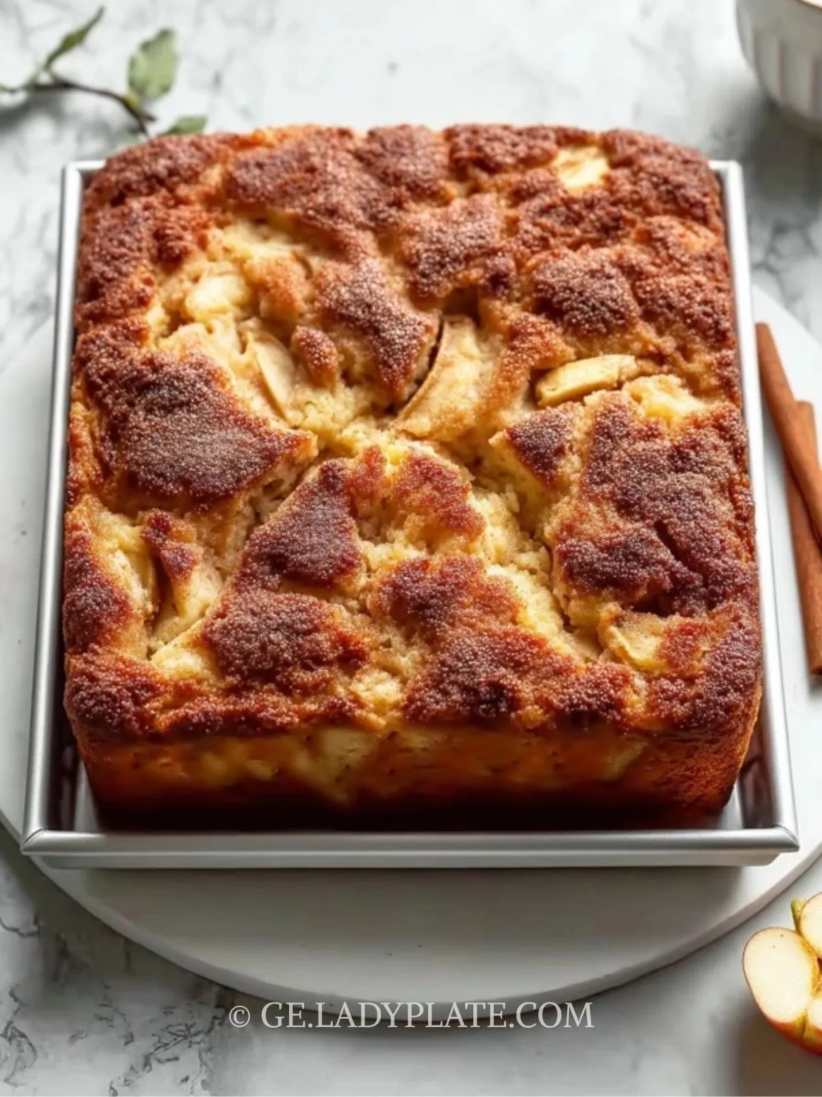 Achte darauf, die Backzeit nicht zu überschreiten und verwende ausreichend saftige Äpfel. Der Kuchen ist fertig, wenn am Stäbchen nur noch wenige Krümel haften.