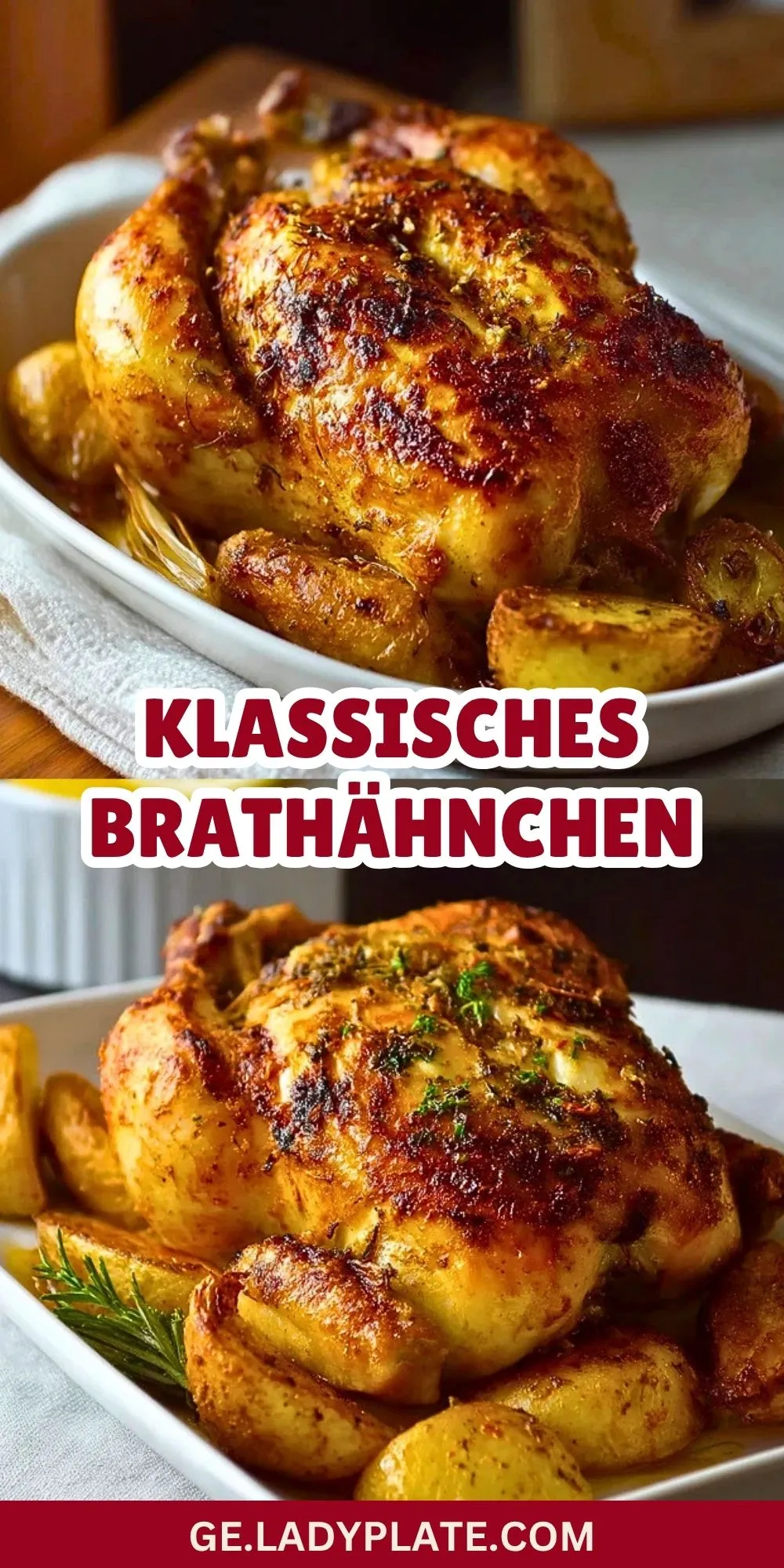 Keywords: Klassisches Brathähnchen, Ofenhähnchen, Brathähnchen mit Kartoffeln, Hähnchen aus dem Ofen