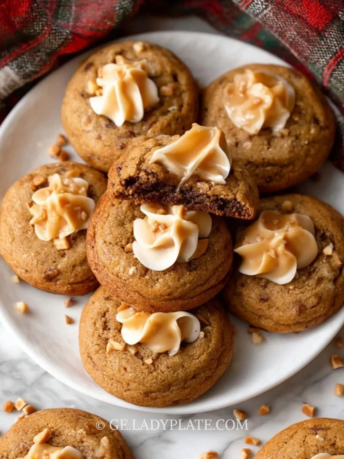 Keywords: Karamellkekse, Puddingkekse, weiche Cookies, Dessertkekse, Frischkäsehaube