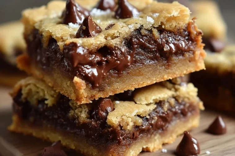 Diese klebrigen Schokoladenkekse Riegel sind genau das Richtige, wenn du dich nicht zwischen saftigem Cookie, weicher Schokoladenfüllung und einem einfachen Blechkuchen entscheiden möchtest. Sie haben einen buttrigen, goldenen Rand, eine herrlich weiche Mitte und dazwischen geschmolzene Schokolade, die beim Anschneiden noch leicht verläuft. Jeder Bissen schmeckt nach klassischem Keksteig, nur in einer besonders üppigen, schnittfesten und zugleich soften Variante.