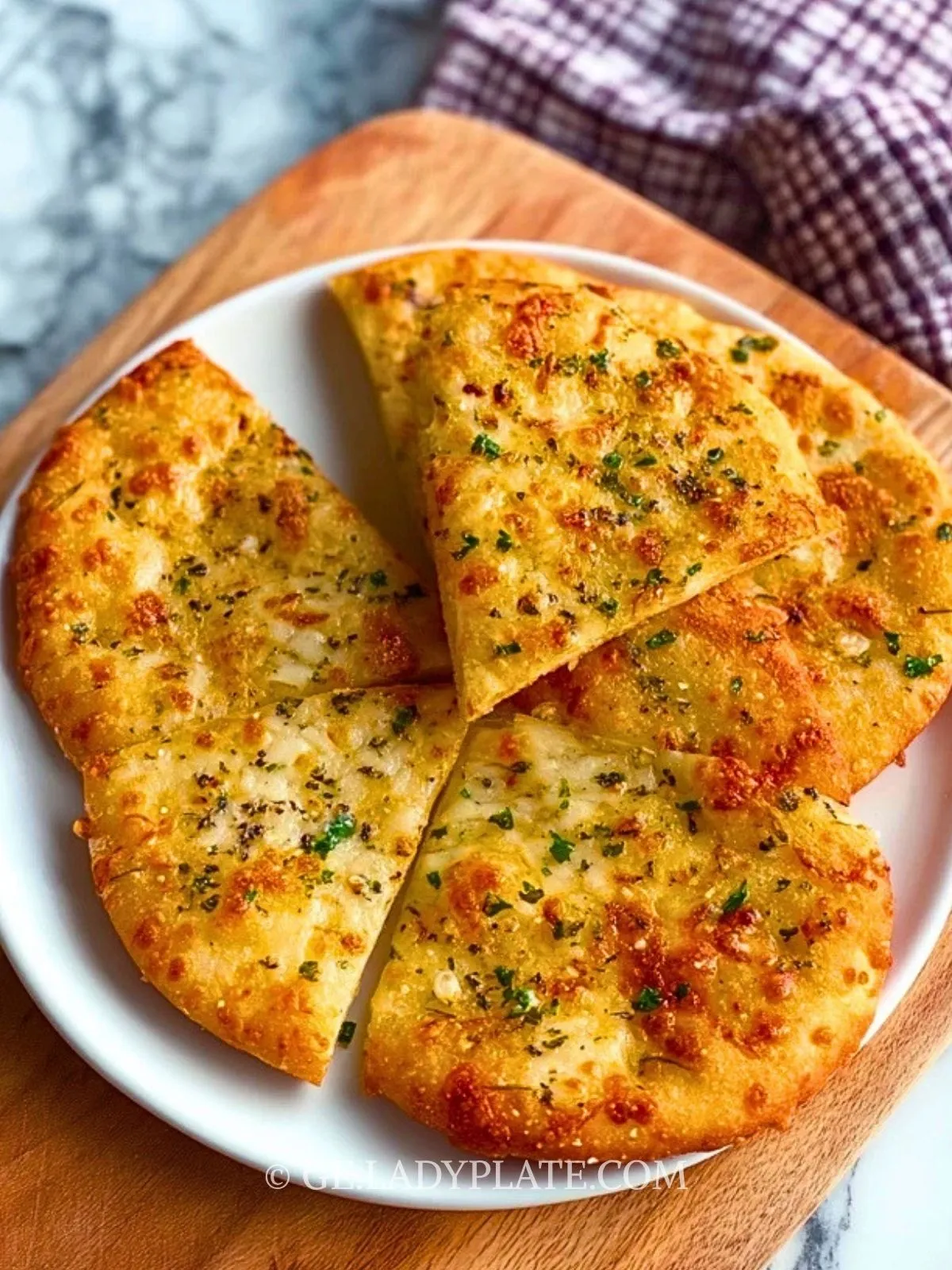 Das Ergebnis erinnert an eine Mischung aus Käsechips, Fladenbrot und klassischem Knoblauchbrot – nur unkomplizierter und in deutlich kürzerer Zeit. Genau deshalb passt dieses Rezept so gut zu Suppen, Salaten, Pasta-Abenden oder einfach als warmer Snack für zwischendurch. Mit wenigen Zutaten entsteht ein würziger Genuss, der außen kross und innen noch leicht zart bleibt.