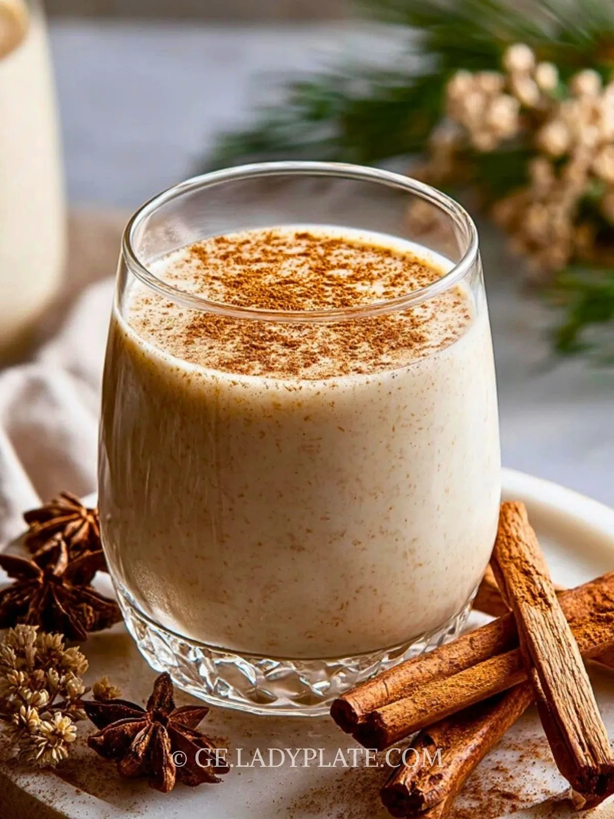6. In zwei Gläser füllen, leicht mit Zimt bestäuben und mit Zimtstangen servieren.