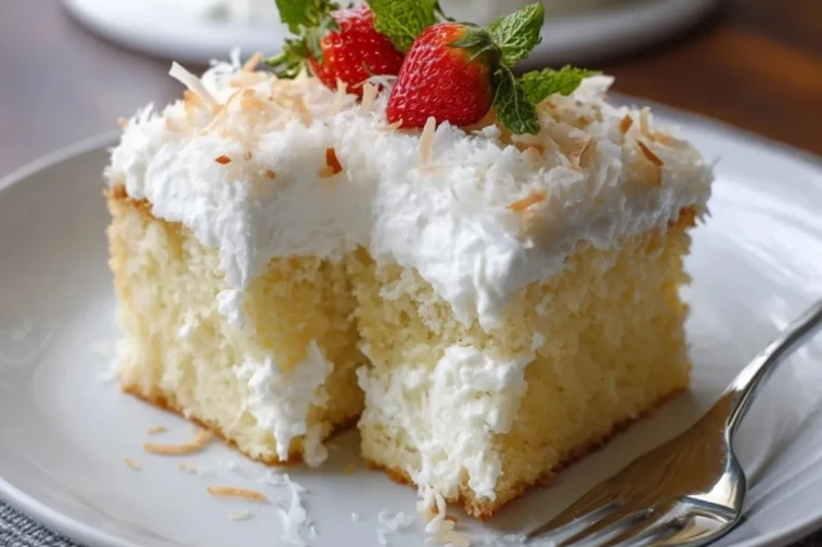 Ein Stück Kokoswolkenkuchen ist wie ein Biss in eine fluffige Wolke – luftig, saftig und einfach unwiderstehlich. Dieser Kuchen vereint eine zarte Biskuitbasis mit einer cremigen Kokosschicht und einer luftigen Sahnehaube. Getoppt mit frischen Erdbeeren oder Minze wird er zum echten Hingucker auf jeder Kaffeetafel.