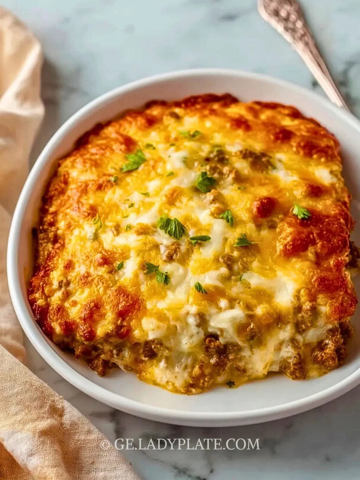 Serviere den köstlichen Keto Puteneintopf am besten direkt aus dem Ofen, wenn der Käse noch weich und herrlich geschmolzen ist. Dazu passen ein grüner Blattsalat, gedünsteter Brokkoli oder kurz angebratene Zucchini besonders gut. Wer das Gericht noch kräftiger mag, kann es mit etwas Chili, geriebenem Parmesan oder frischen Kräutern abrunden.