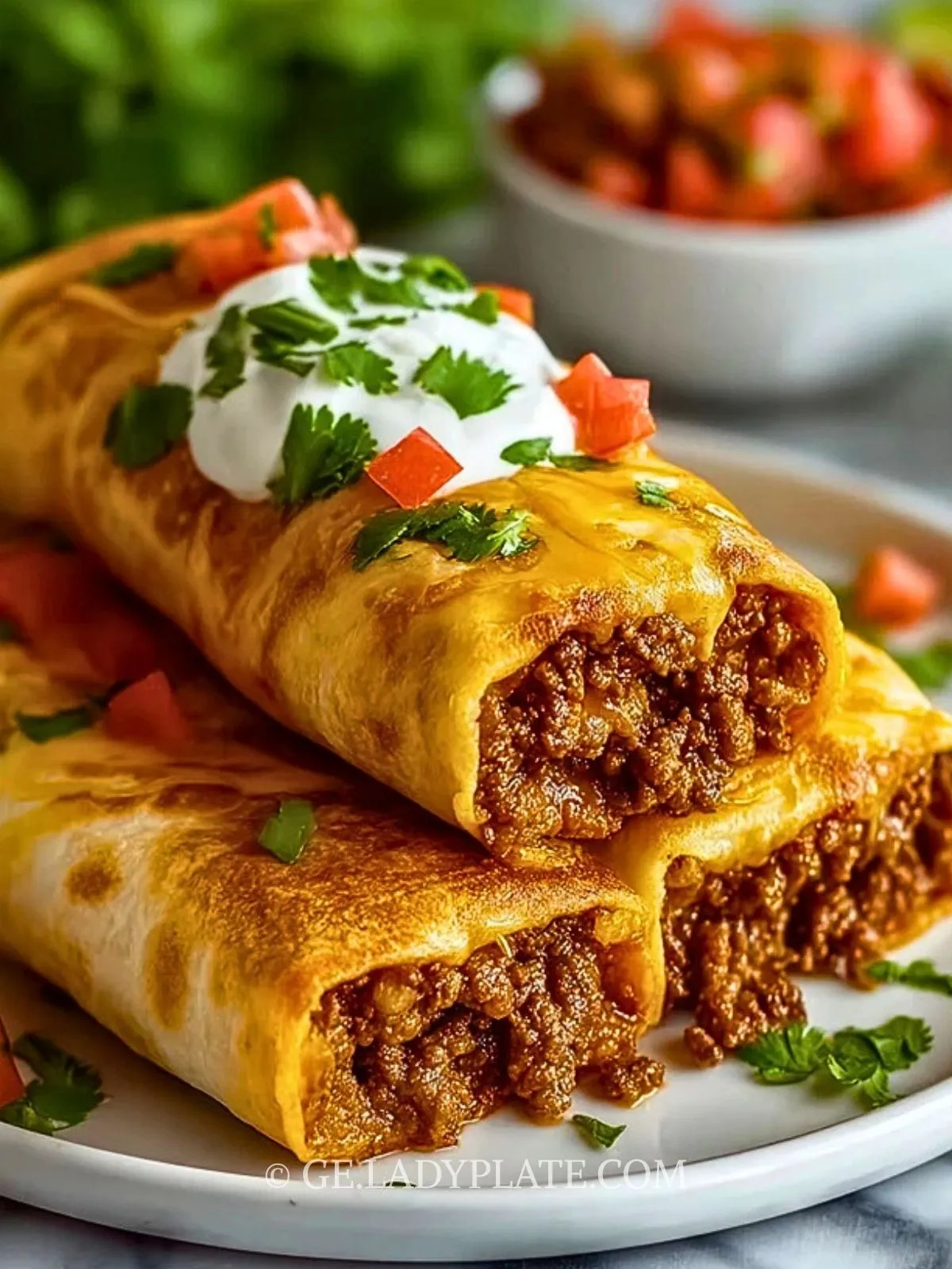 Die Chimichangas aus der Pfanne nehmen und kurz abtropfen lassen. Mit frischen Tomaten, grünem Salat, Koriander und einem Löffel Sauerrahm servieren – fertig ist das Tex-Mex-Glück!