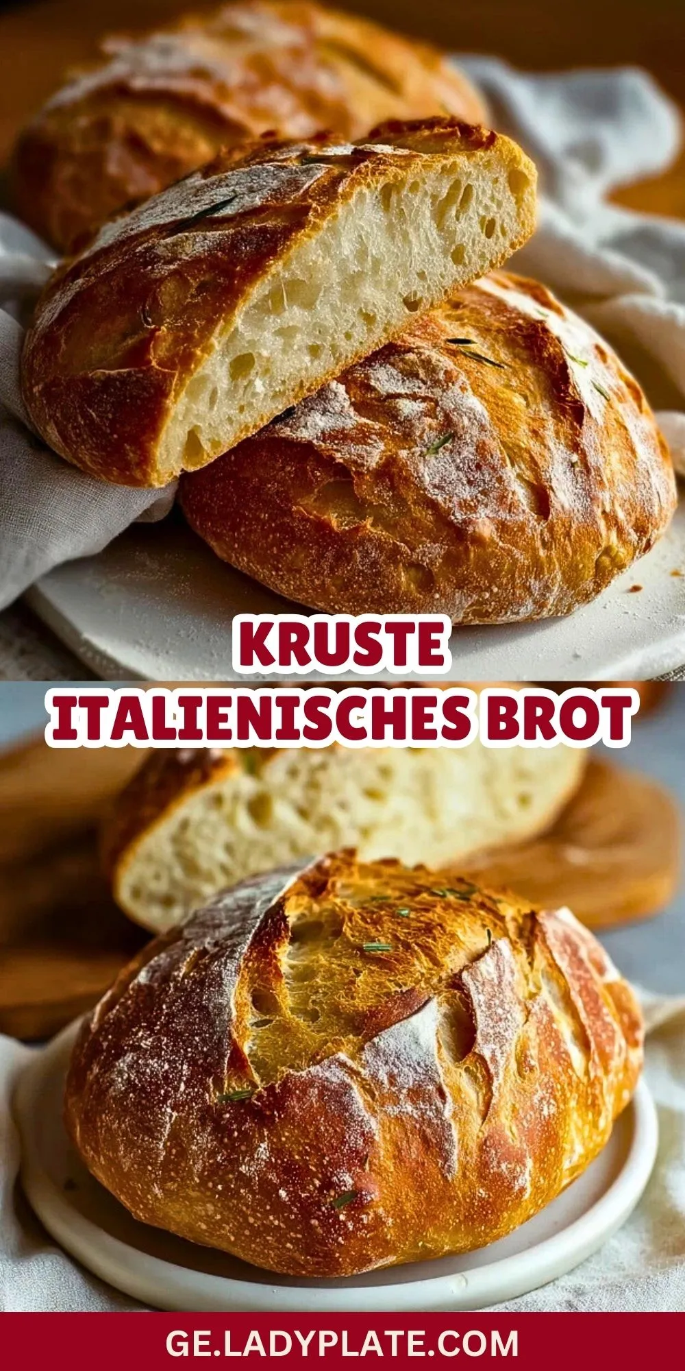 Ein goldbraunes, knuspriges Laib Brot, das beim Anschneiden leise knackt und im Inneren eine weich-elastische Krume offenbart – genau so fühlt sich ein Stück Italien in der eigenen Küche an. Dieses italienische Krustenbrot ist außen herrlich rustikal, innen luftig und voller Aroma. Perfekt, um Olivenöl aufzutunken, zu Antipasti zu reichen oder einfach noch leicht warm mit etwas Butter zu genießen.