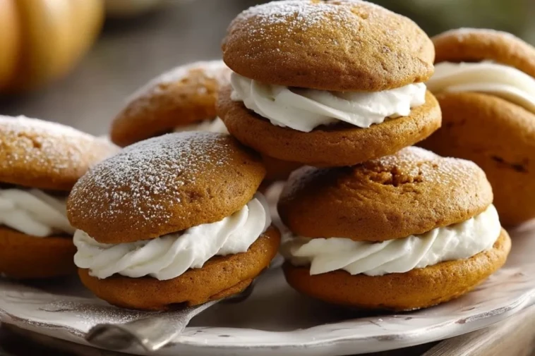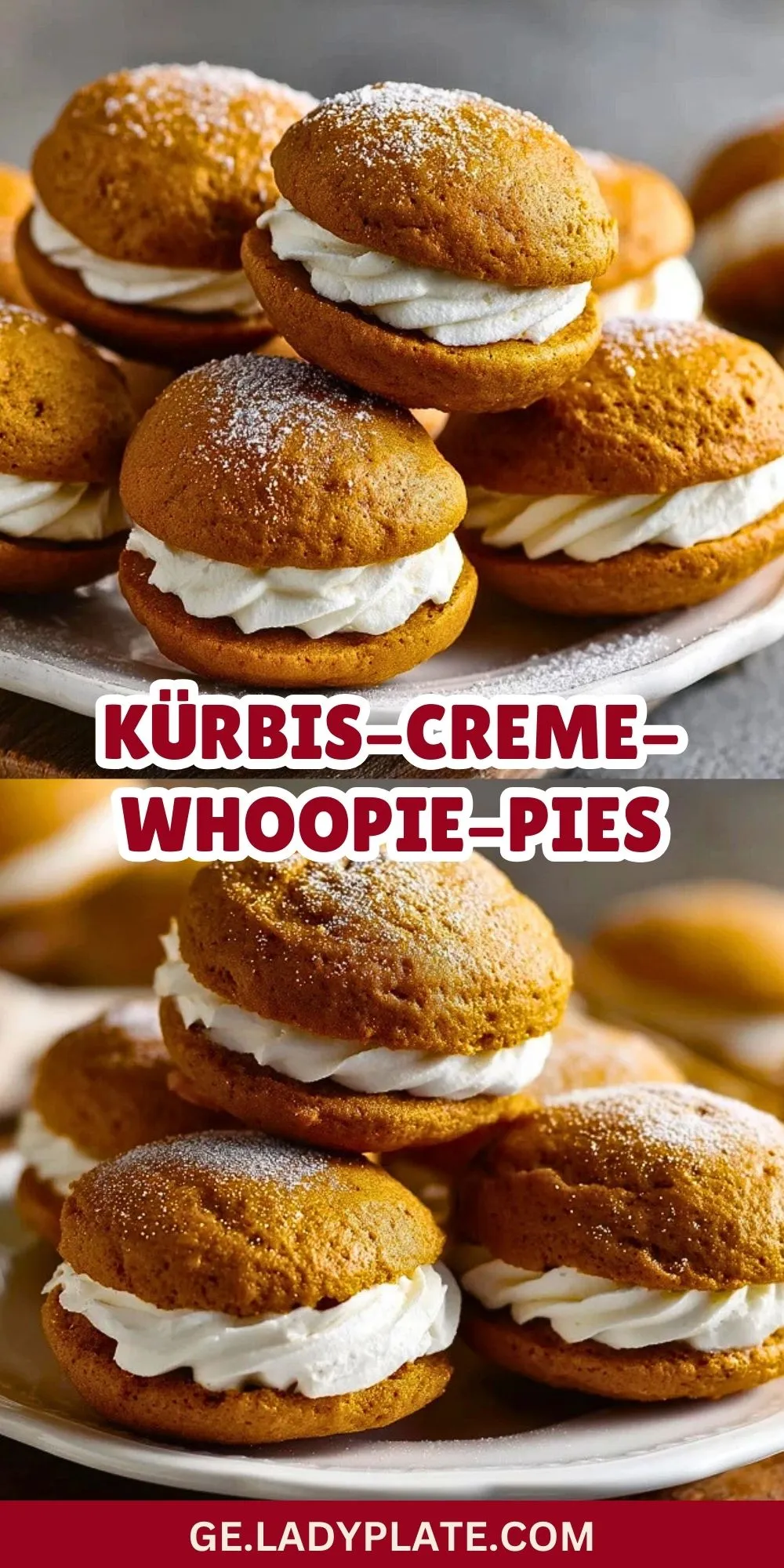 Kürbis-Creme-Whoopie-Pies sind kleine, weiche Sandwichkekse mit herbstlichem Kürbis und würziger Frischkäsecreme. Sie vereinen die besten Aromen von Kürbiskuchen und Keksen in einem saftigen, handlichen Genuss – ideal für gemütliche Herbsttage oder als Highlight auf dem Kaffeetisch.