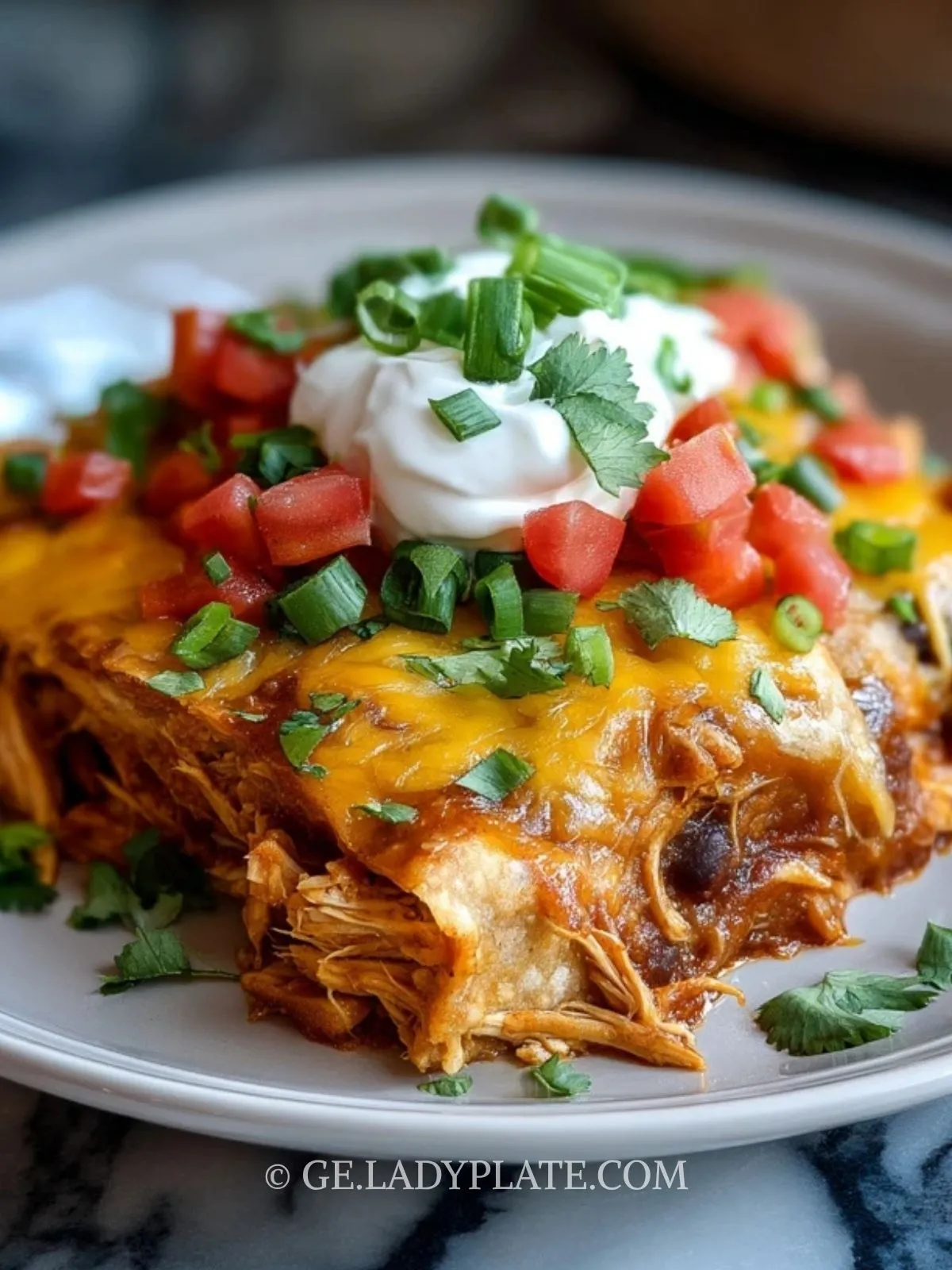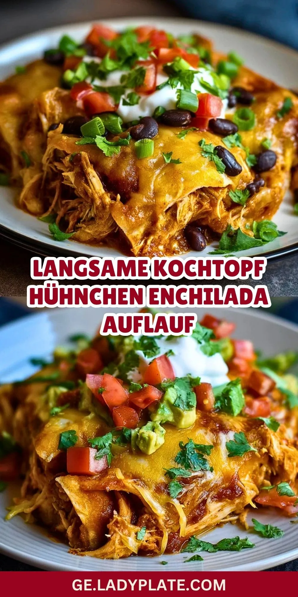 Keywords: Hühnchen-Enchilada-Auflauf, Slow Cooker, Crockpot, Hähnchenauflauf, Familienessen