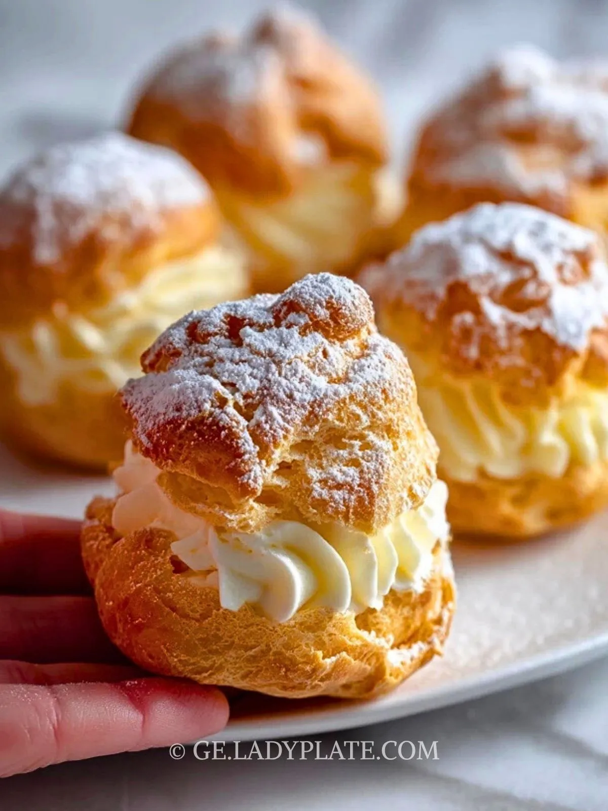 Mamas berühmte Windbeutel sind ein echtes Lieblingsgebäck für besondere Anlässe und gemütliche Nachmittage. Außen sind sie zart und leicht, innen wunderbar luftig, und die cremige Füllung macht jeden Bissen herrlich weich und vollmundig. Ein Hauch Puderzucker und etwas Schokoladendekor geben ihnen den klassischen, festlichen Look, den man sofort mit hausgemachtem Gebäck verbindet.