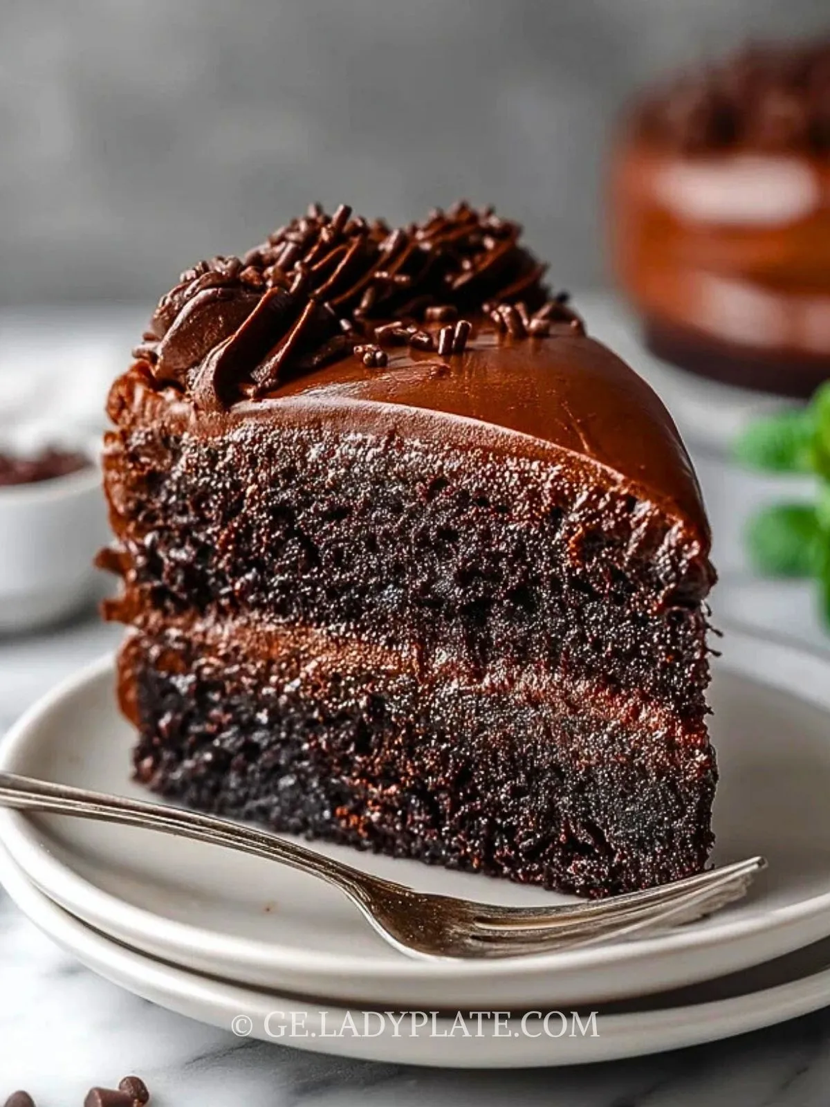 Keywords: Schokoladenkuchen, Mitternachts-Schokoladenkuchen, saftiger Kuchen, Ganache