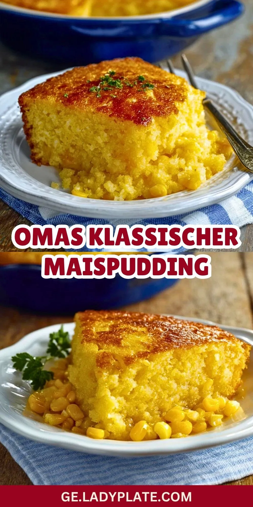 Keywords: Maispudding, Omas klassischer Maispudding, Beilage aus dem Ofen, cremiger Maisauflauf, Mais Rezept