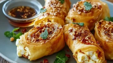Ofenfrittierte Feta-Rollen mit Chili-Honig