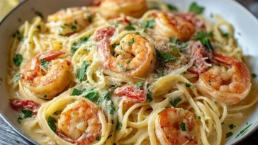 Cremige Knoblauch-Garnelen-Pasta
