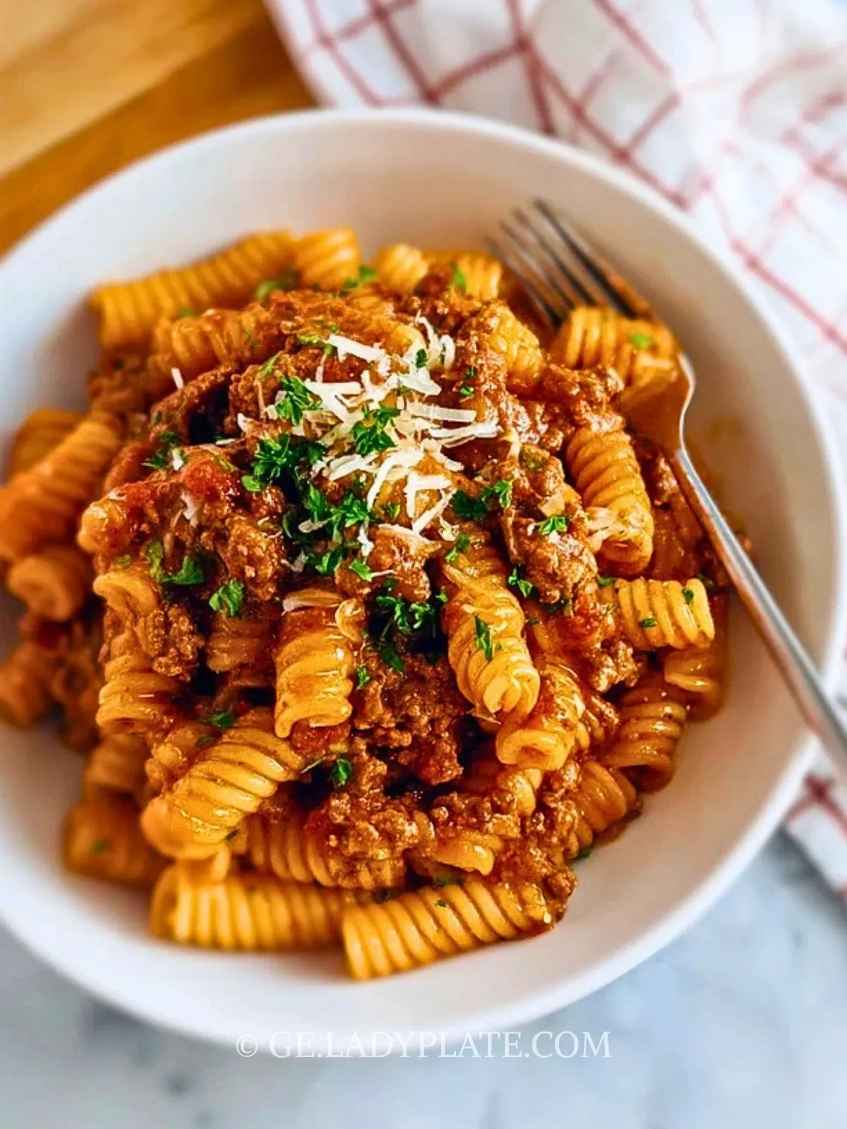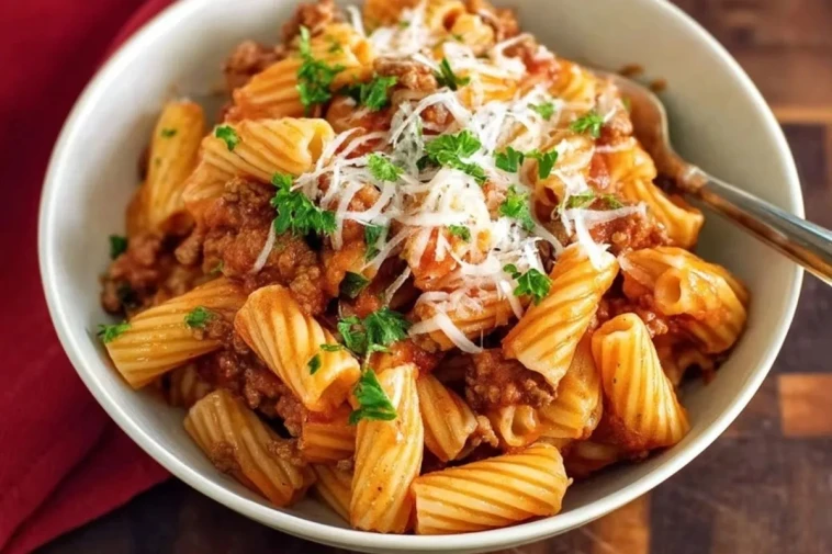 So bereitest du Pasta mit Hackfleisch in Tomatensauce zu