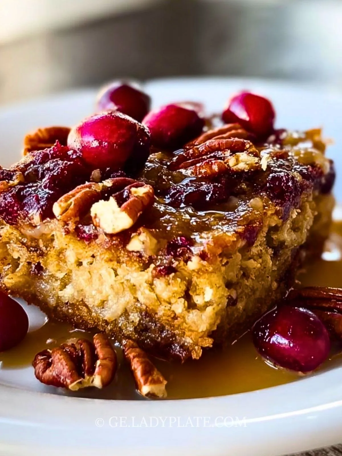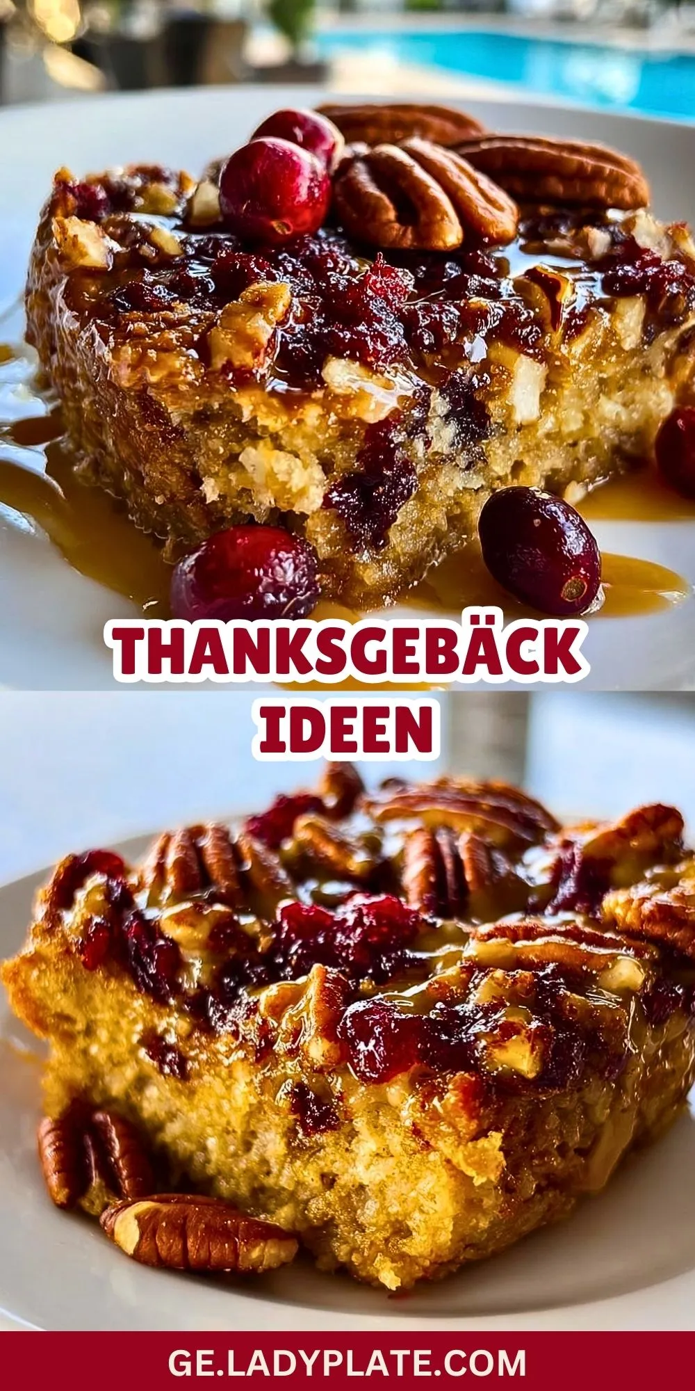 Die karamellisierte Oberfläche, durchzogen von Pekannussstücken und rubinroten Cranberries, sieht nicht nur beeindruckend aus, sondern schmeckt auch unwiderstehlich nussig und süß-säuerlich. Perfekt als Dessert, zum Nachmittagskaffee oder als Mitbringsel zu Familienfeiern – dieser Kuchen kommt garantiert gut an.