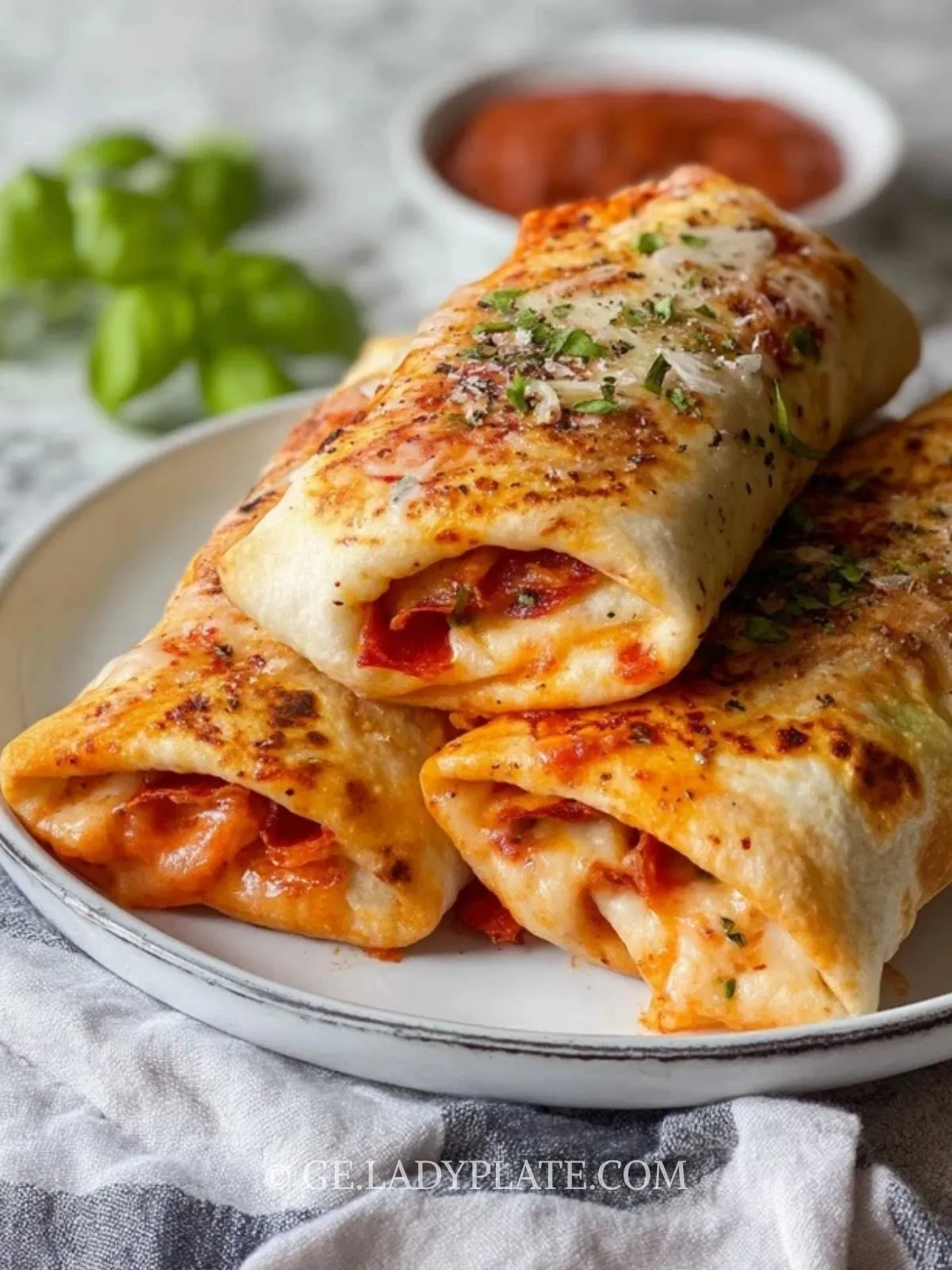 Schneide die Burritos schräg auf und serviere sie warm – gerne mit etwas extra Tomatensauce zum Dippen oder frischen Kräutern obendrauf.