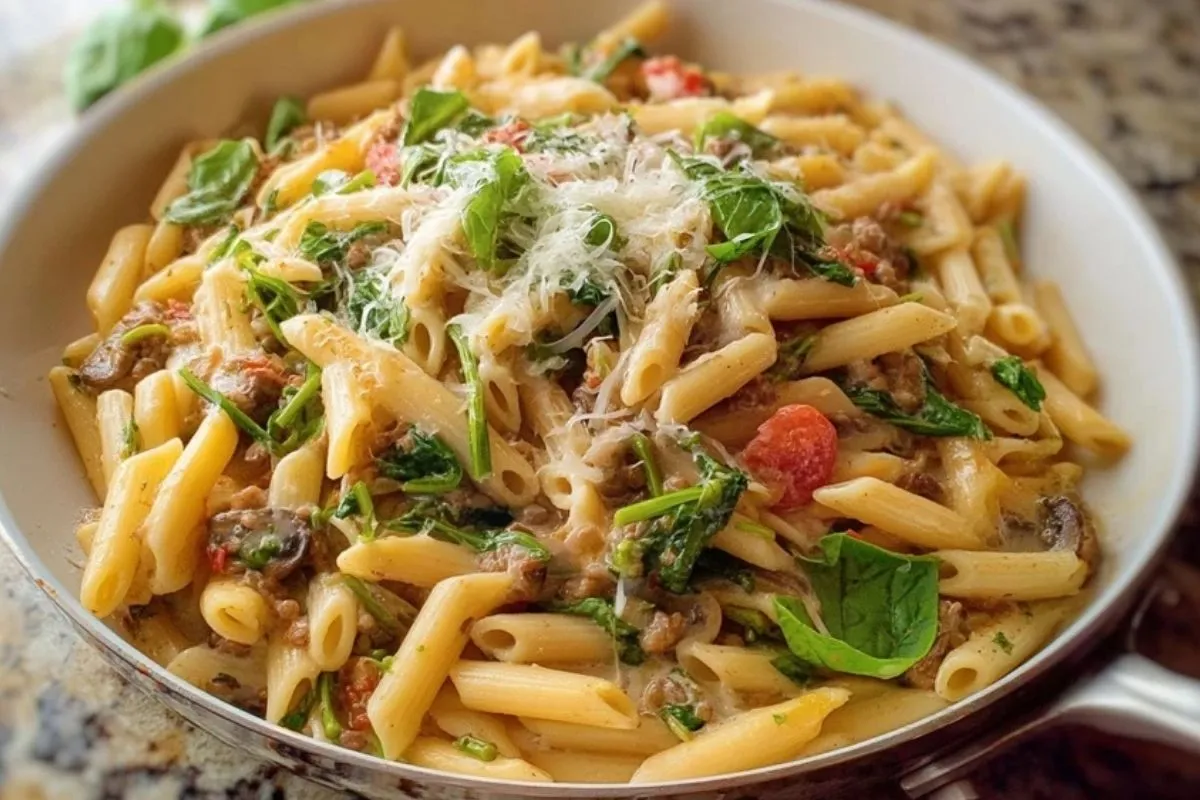 Jägerpfanne mit Nudeln für ein unkompliziertes Familienessen.