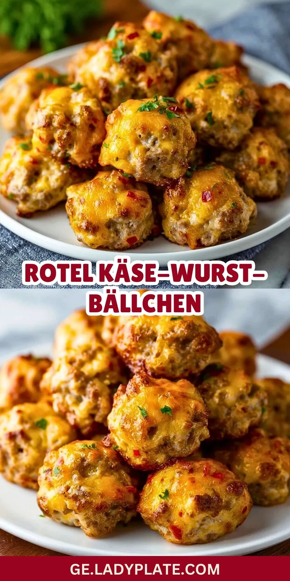 Goldbraun gebacken, saftig und voller Geschmack – Rotel Käse-Wurst-Bällchen sind der perfekte Party-Snack oder herzhafte Begleiter für ein entspanntes Abendessen. Diese kleinen Bällchen vereinen würzige Bratwurst, geschmolzenen Käse und die angenehme Schärfe von Rotel-Tomaten zu einem Snack, der garantiert alle begeistert.