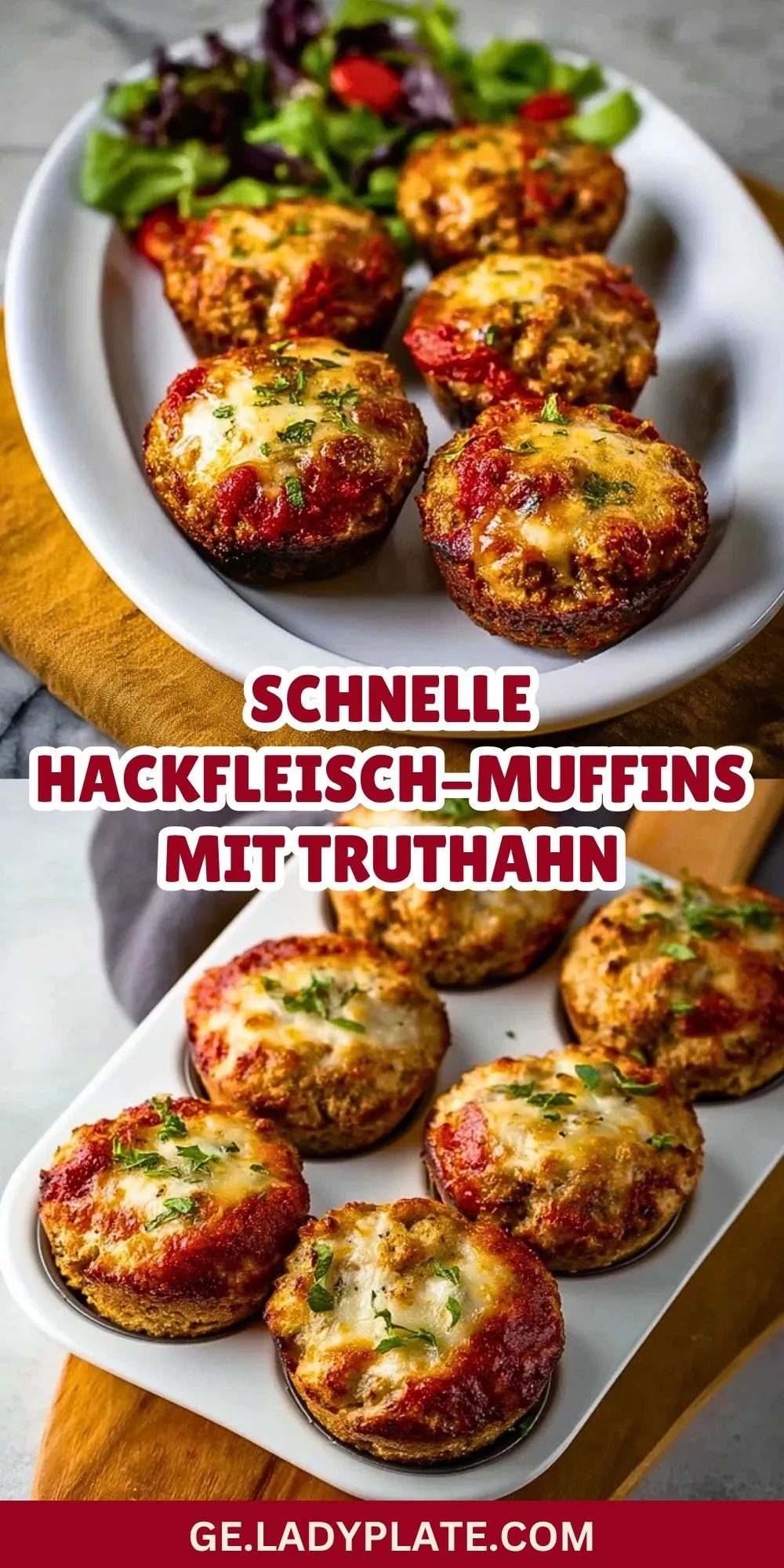 Saftige, würzige Hackfleisch-Muffins mit Truthahn sind eine schnelle und alltagstaugliche Ofenidee, wenn du etwas Herzhaftes in praktischen Portionen suchst. Mit Tomatensauce und goldener Käsehaube gebacken, schmecken sie der ganzen Familie und eignen sich perfekt für Abendessen, Meal-Prep oder ein rustikales Buffet.