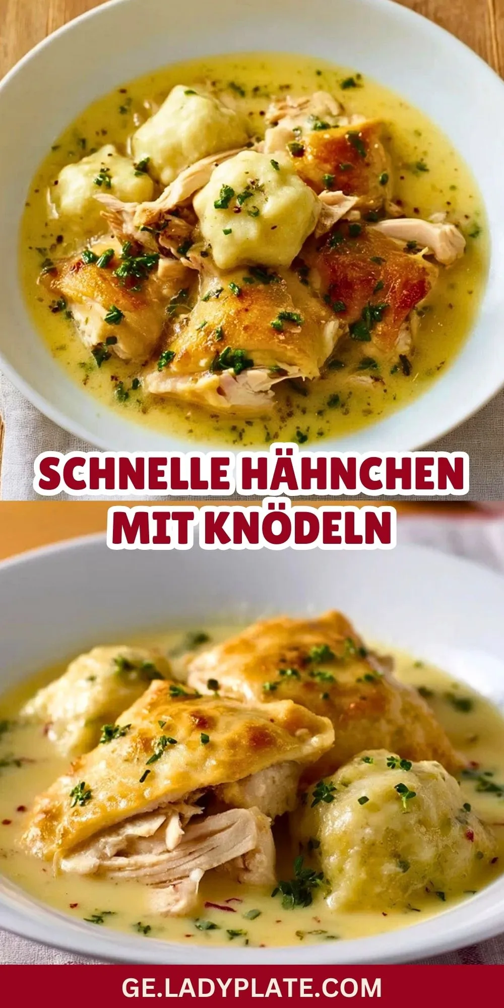 Saftiges Hähnchenfleisch in einer aromatischen, cremigen Soße und lockere, selbstgemachte Knödel – das perfekte Wohlfühlgericht für die ganze Familie! Mit wenigen Handgriffen und klassischen Zutaten zauberst du im Handumdrehen ein echtes Hausmannskost-Highlight.