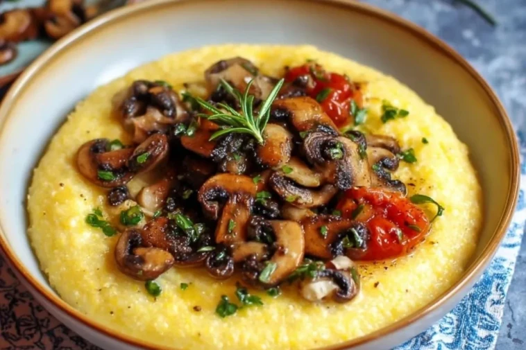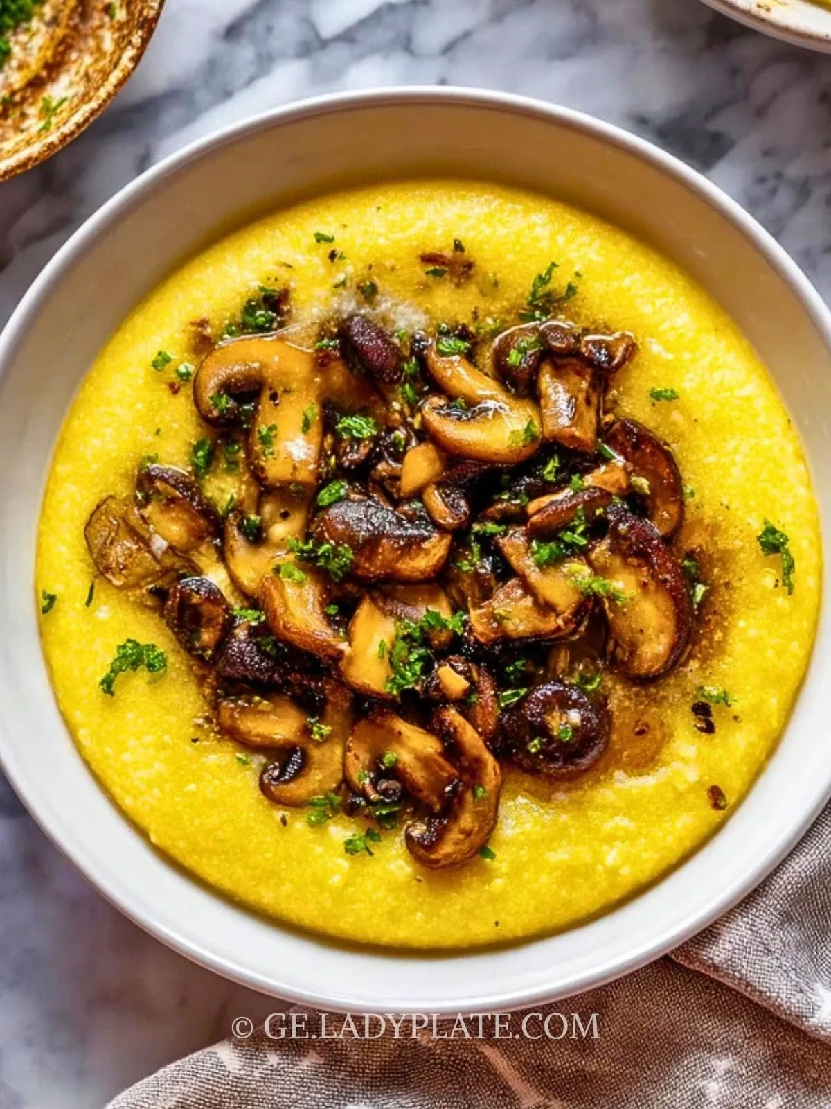 Die feine Maiscreme ist wunderbar mild und wird durch Butter und Parmesan extra sämig. Oben drauf kommen herzhafte Champignons, die zusammen mit Knoblauch, Kräutern und etwas Zitronensaft in der Pfanne geröstet werden. So entsteht ein vegetarisches Wohlfühlgericht, das satt macht, ohne schwer zu liegen.
