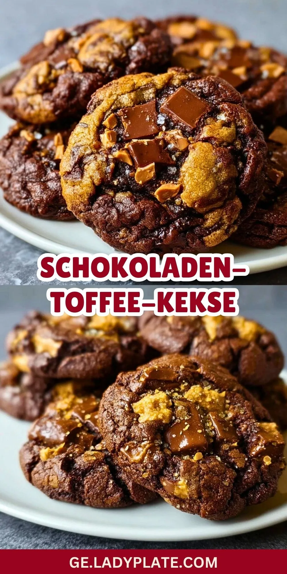 Saftige, weiche Schokoladenkekse mit knackigen Toffee-Stückchen und einer Prise Meersalz. Perfekt für Schokoladenliebhaber, lassen sich wunderbar vorbereiten und sind ein Highlight auf jeder Kaffeetafel!