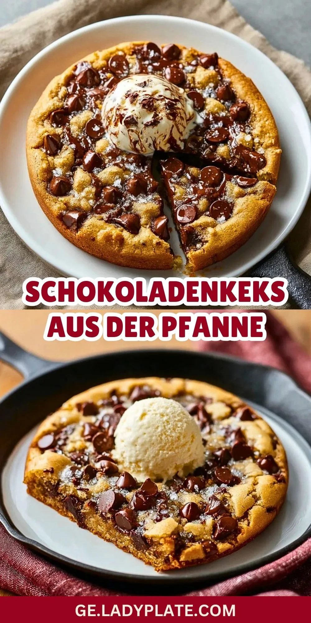 Der Schokoladenkeks aus der Pfanne bringt echtes Cookie-Feeling an den Tisch und ist ideal zum Teilen. Noch warm serviert, eventuell mit einer Kugel Vanilleeis, ist er ein echtes Highlight auf jeder Kaffeetafel oder als gemütliches Dessert für zwei. In nur wenigen Schritten zauberst du diesen riesigen Keks direkt aus dem Ofen – Genuss pur und einfach gemacht!