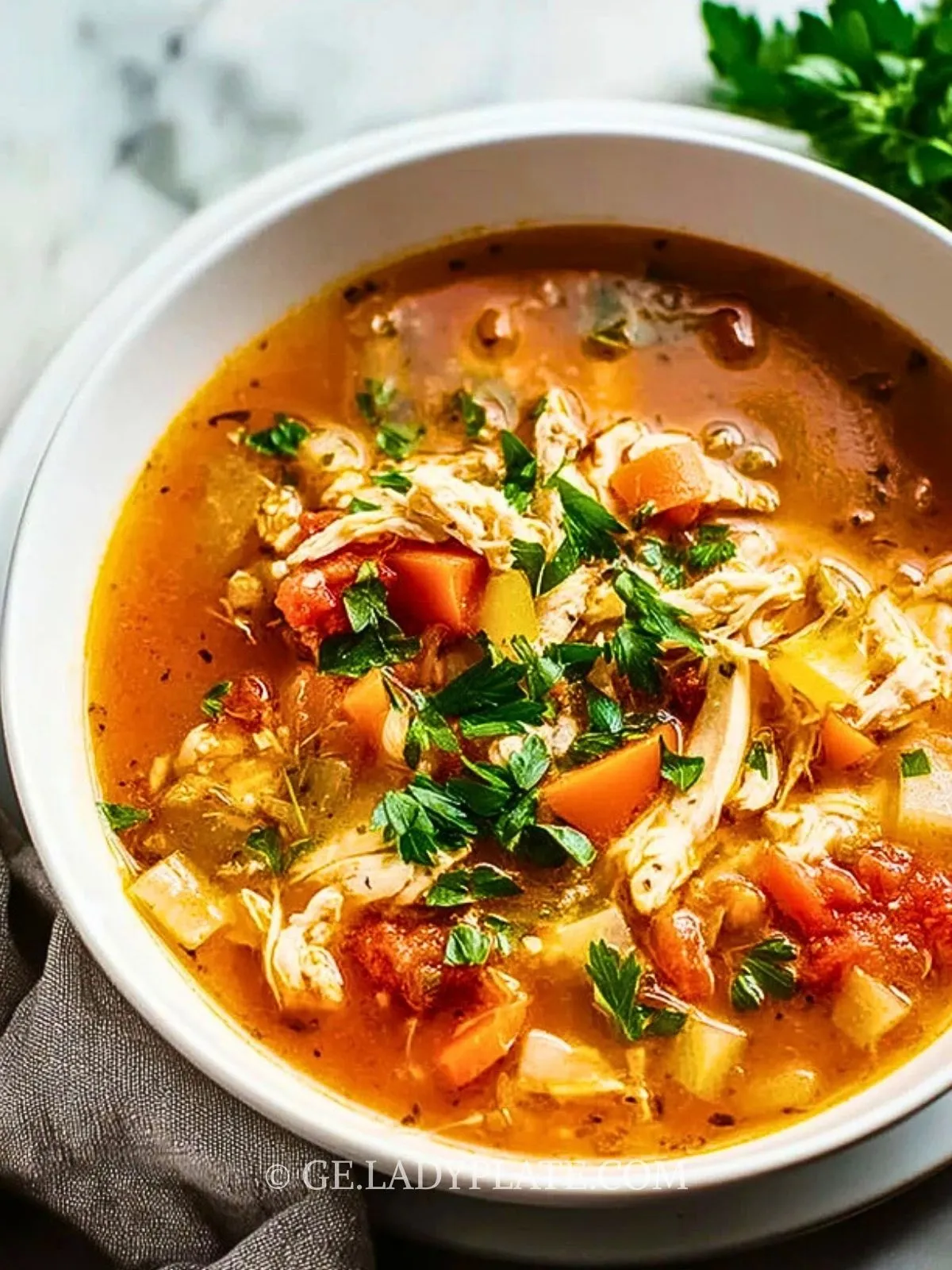 Diese Sizilianische Hühnersuppe bringt mediterrane Frische und wohltuende Wärme in eine Schale. Zartes Hähnchenfleisch, buntes Gemüse und eine fruchtige Tomatenbrühe verbinden sich zu einem leichten, aber sättigenden Gericht für die ganze Familie.
