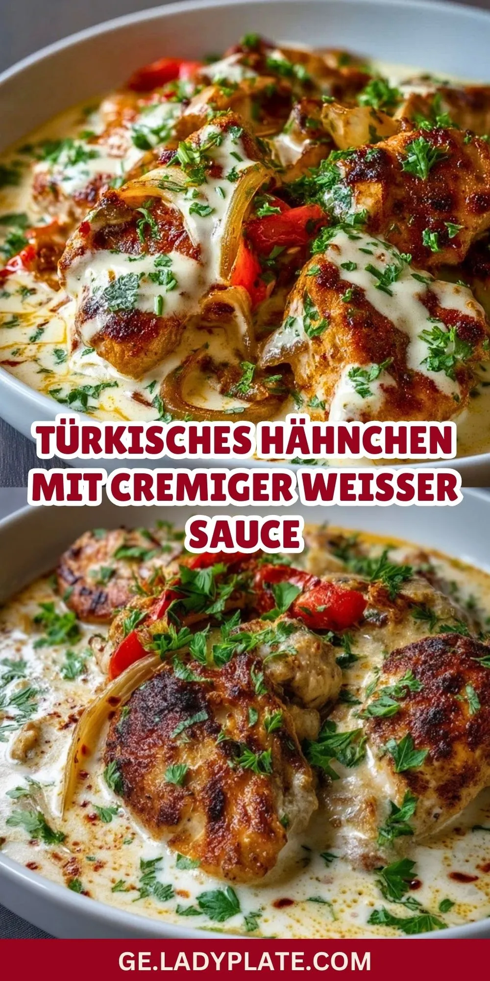 Ein Fest für die Sinne: Saftig gebratene Hähnchenbrust, gebettet in eine herrlich cremige, aromatische weiße Sauce – dazu knackige Paprika und süße Zwiebeln. Dieses türkisch inspirierte Ofengericht bringt orientalische Wärme und eine wundervolle Würze direkt auf deinen Esstisch. Die perfekte Kombination aus zarten Hähnchenstücken, frischen Kräutern und einer Sauce, die du garantiert bis zum letzten Tropfen auftunken möchtest!