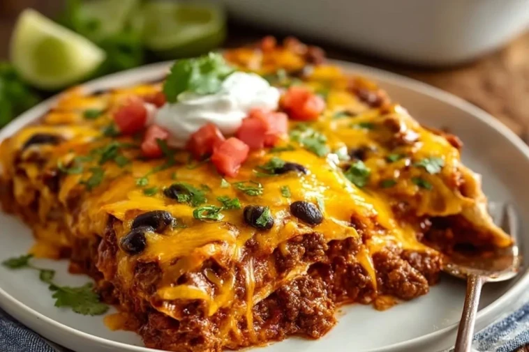Weil er kräftigen Geschmack mit einfacher Zubereitung verbindet. Statt einzelne Enchiladas mühsam zu füllen und aufzurollen, werden alle Komponenten geschichtet oder locker eingelegt und gemeinsam gebacken. Das spart Zeit, macht das Rezept anfängerfreundlich und sorgt trotzdem für die typische Kombination aus würziger Fleischfüllung, Tomatensauce, Bohnen, Tortillas und geschmolzenem Käse.