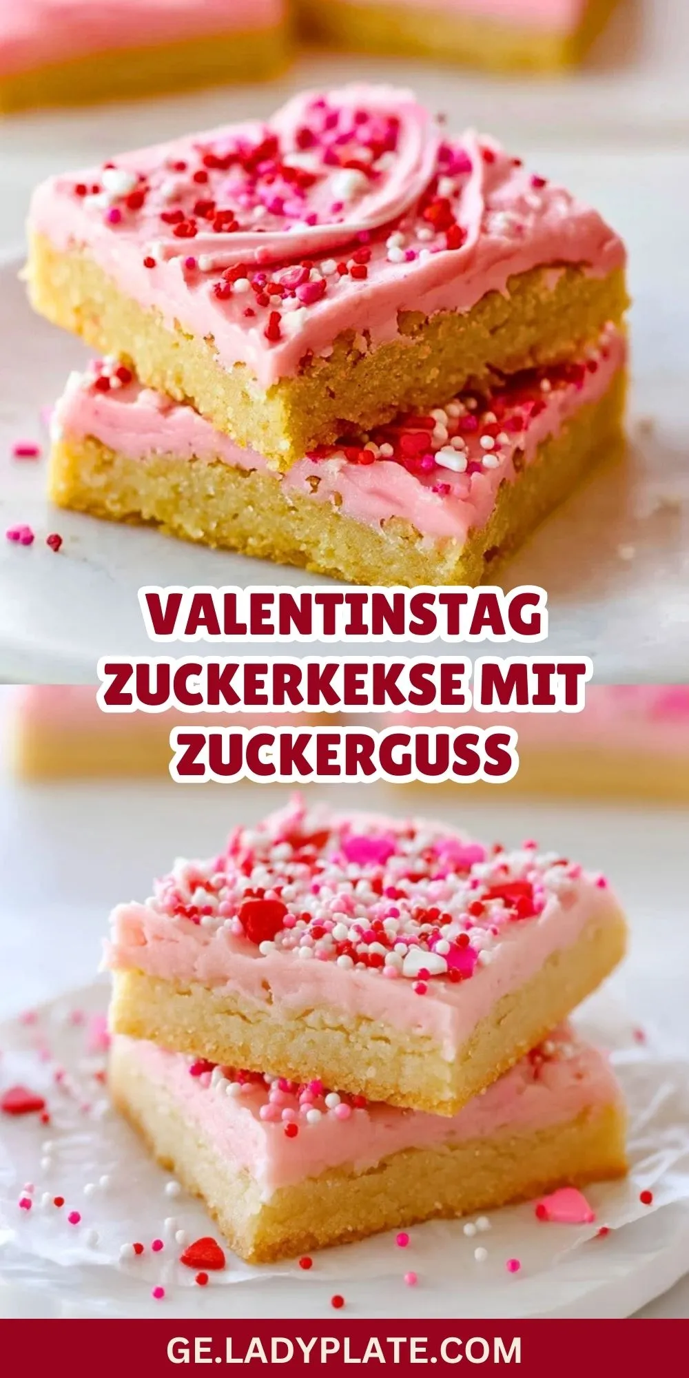 Zarte, buttrige Kekse mit cremigem rosa Zuckerguss und fröhlichen Streuseln – die perfekten Valentinstagsleckereien für alle, die Süßes und Herzhaftes lieben. Die Zubereitung ist einfach, das Ergebnis ein Hingucker auf jeder Kaffeetafel.