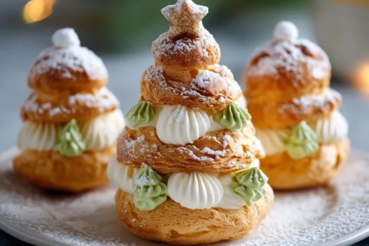 Weihnachtsbaum-Windbeutel verbinden klassische französische Patisserie mit einer festlichen Optik, die sofort weihnachtliche Stimmung auf den Tisch bringt. Durch das Stapeln mehrerer kleiner Windbeutel und eine dekorative Cremefüllung entsteht ein Dessert, das raffiniert aussieht, aber auf vertrauten Grundlagen wie Brandteig, Sahnecreme und Puderzucker basiert. Genau diese Kombination aus feinem Geschmack, leichter Textur und dekorativem Aussehen macht sie zu einem besonderen Hingucker für die Feiertage.