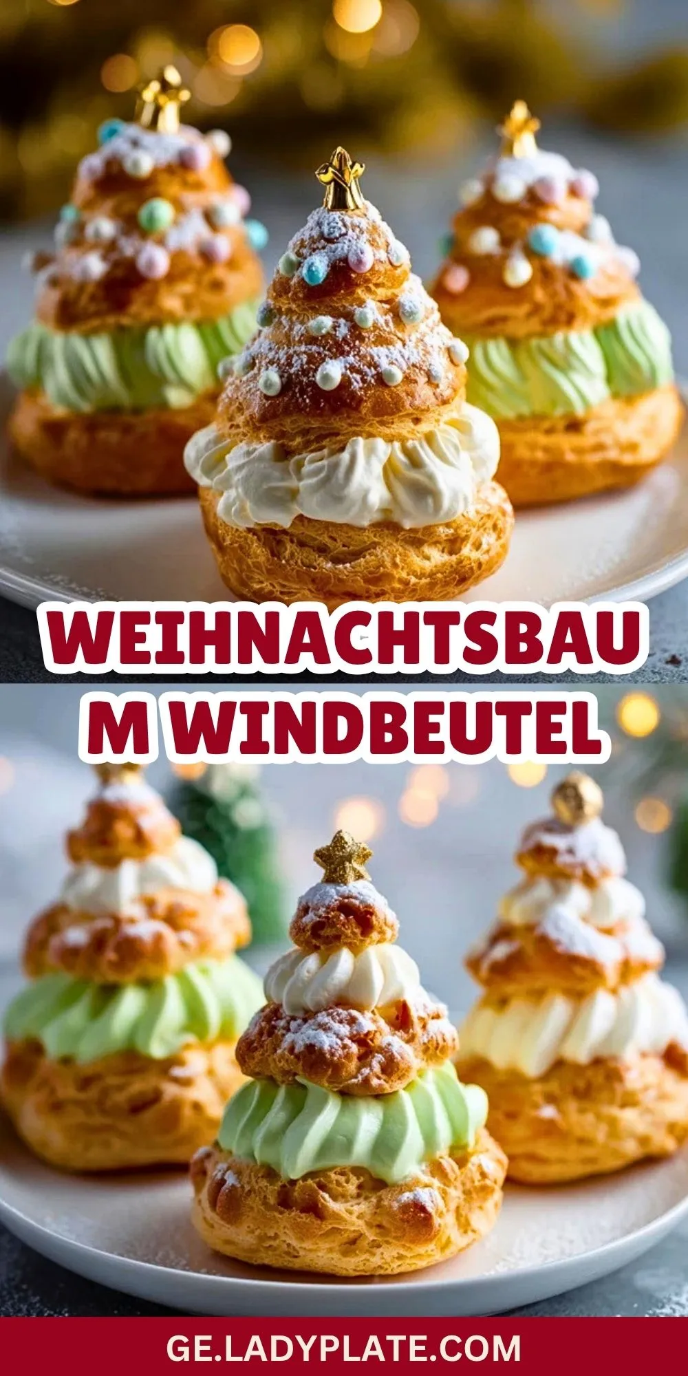 Keywords: Weihnachtsbaum Windbeutel, Windbeutel, Weihnachtsdessert, Brandteig, festliches Gebäck