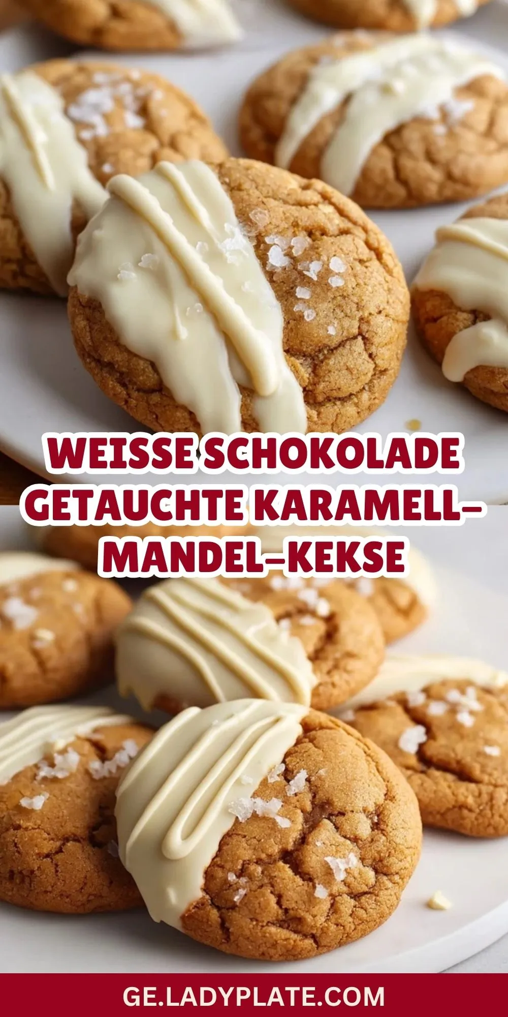 Karamellige, weiche Kekse mit gerösteten Mandeln und einer zarten weißen Schokoladenglasur. Perfekt zum Verschenken, für Festtage oder einfach zum Kaffee. Diese Kekse begeistern durch ihr Aroma und die Kombination aus Crunch und Schokolade.