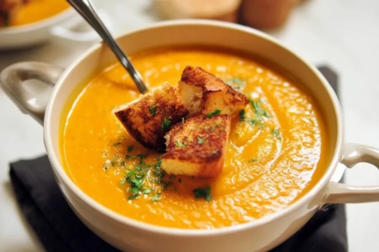 Was macht diese würzige Kürbissuppe mit Käsecroutons so besonders?