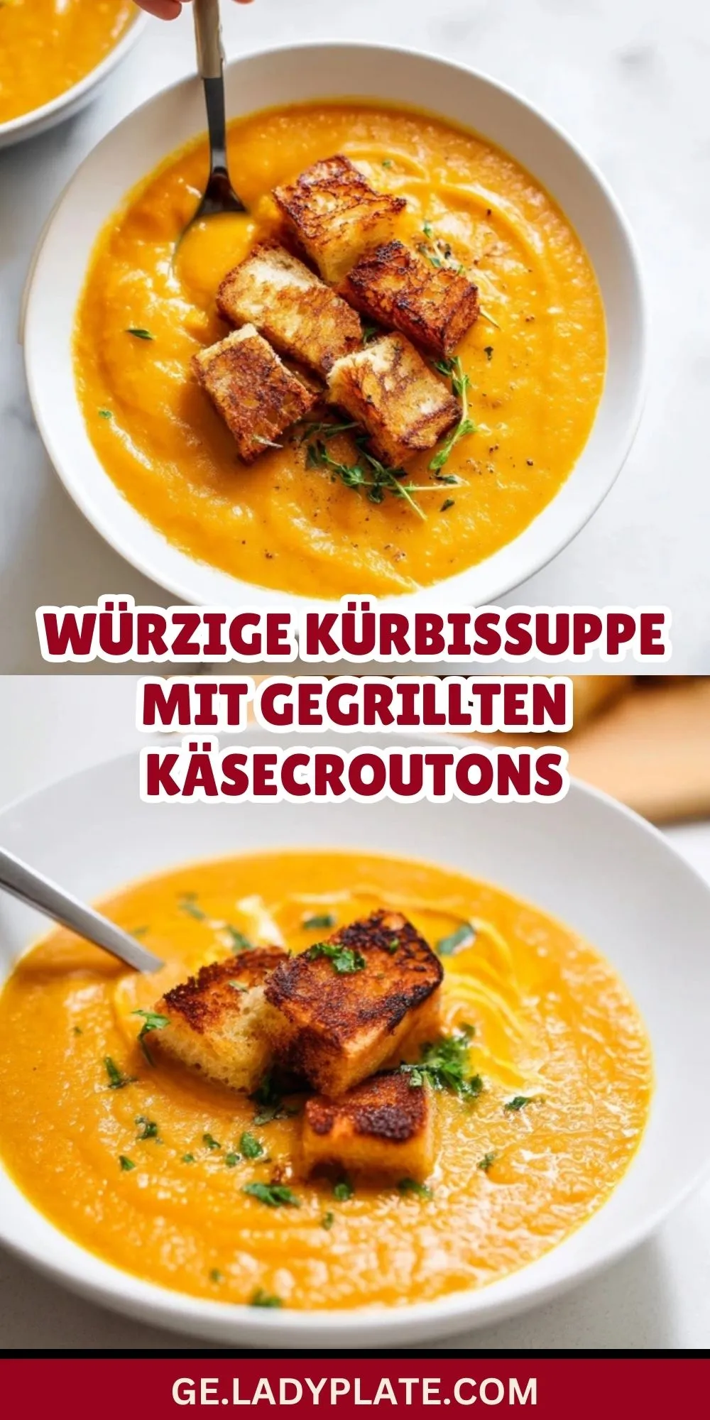 Würzige Kürbissuppe mit Gegrillten Käsecroutons