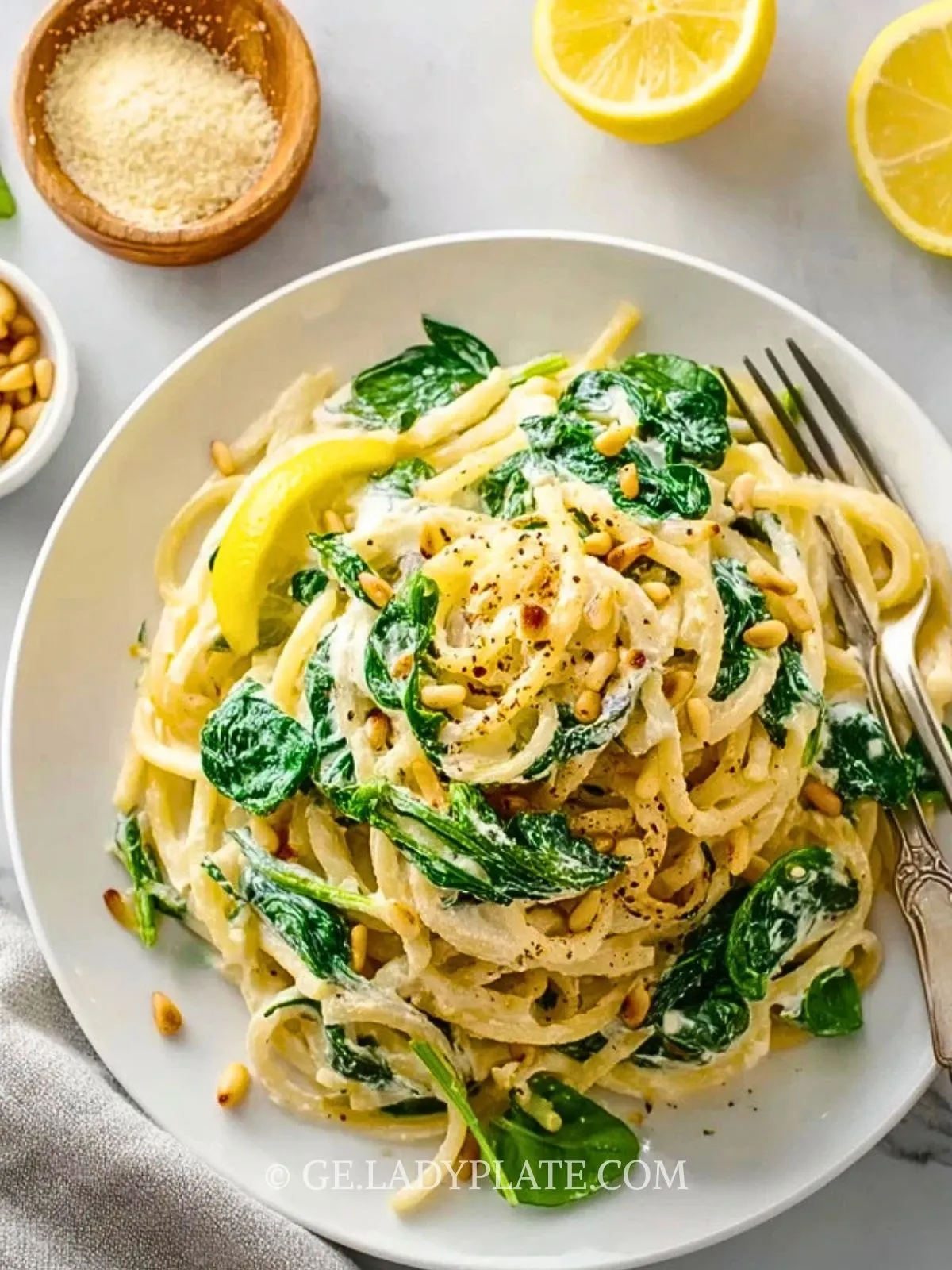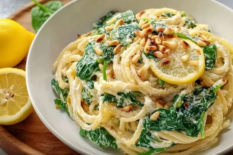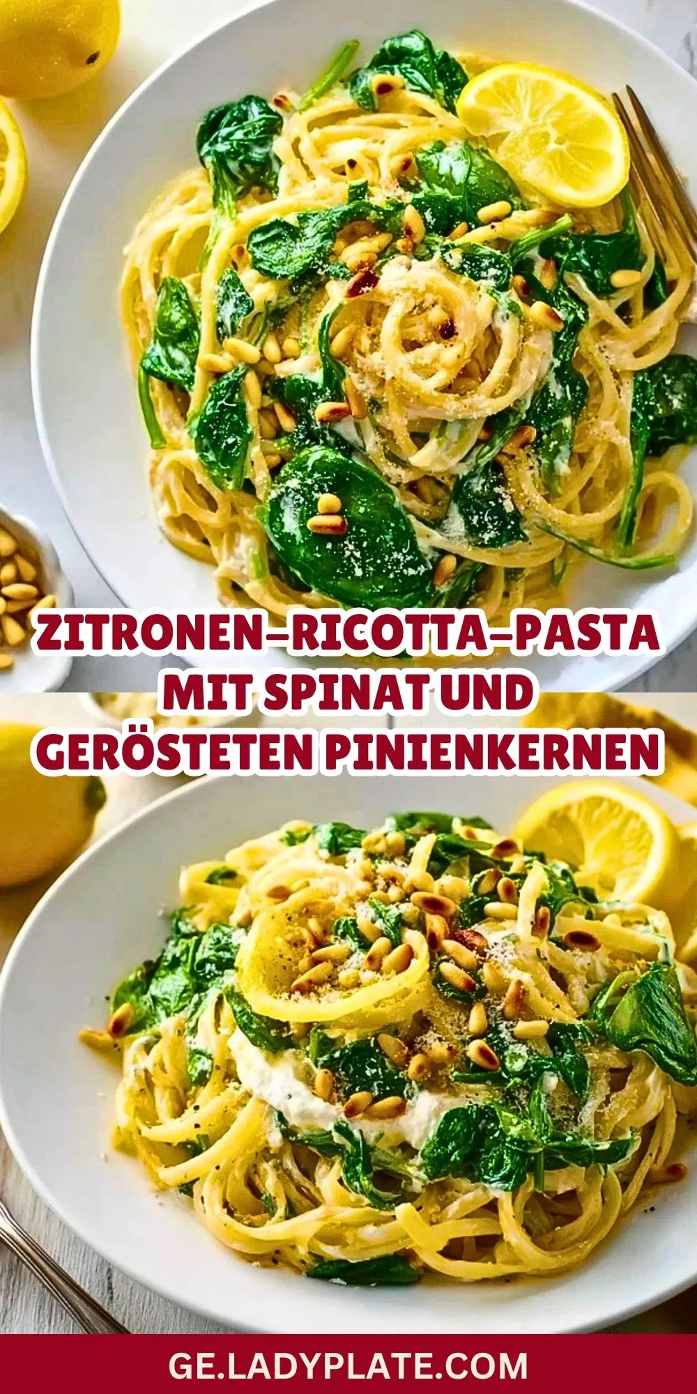 Diese Zitronen-Ricotta-Pasta mit Spinat und gerösteten Pinienkernen ist ein schnelles, cremiges Nudelgericht mit frischer Zitronennote, mildem Ricotta und zartem Spinat. Geröstete Pinienkerne und Parmesan sorgen für zusätzlichen Geschmack und machen das Rezept zu einer unkomplizierten, aber besonderen Mahlzeit für Alltag und Gäste.
